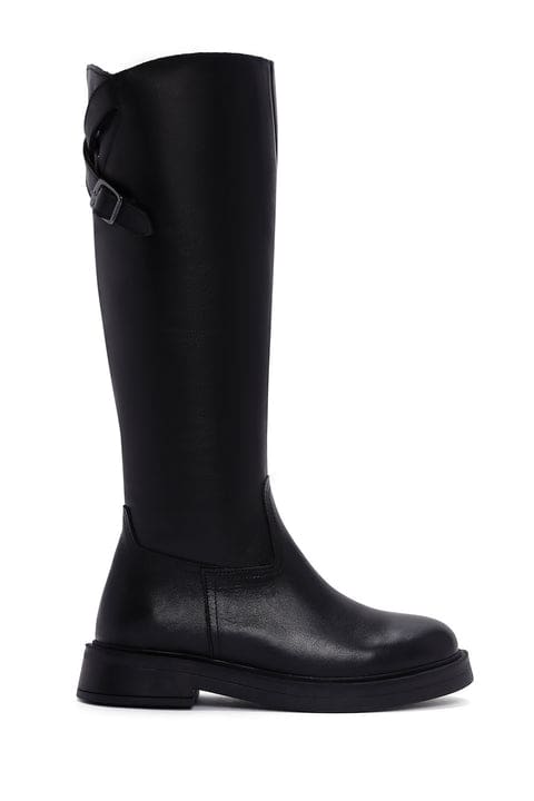 Kadın Siyah Deri Fermuarlı Çizme