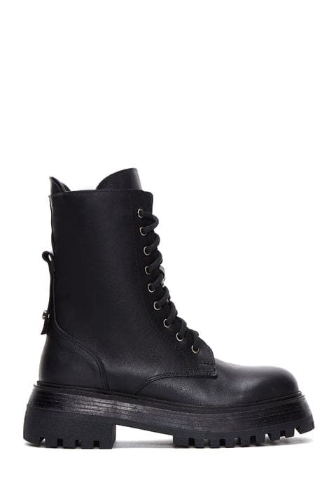 Kadın Siyah Deri Fermuarlı Postal Bot