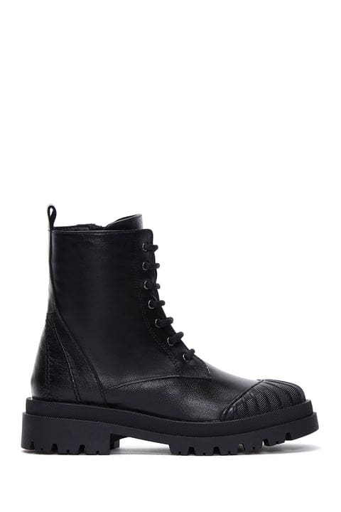 Kadın Siyah Deri Fermuarlı Postal Bot