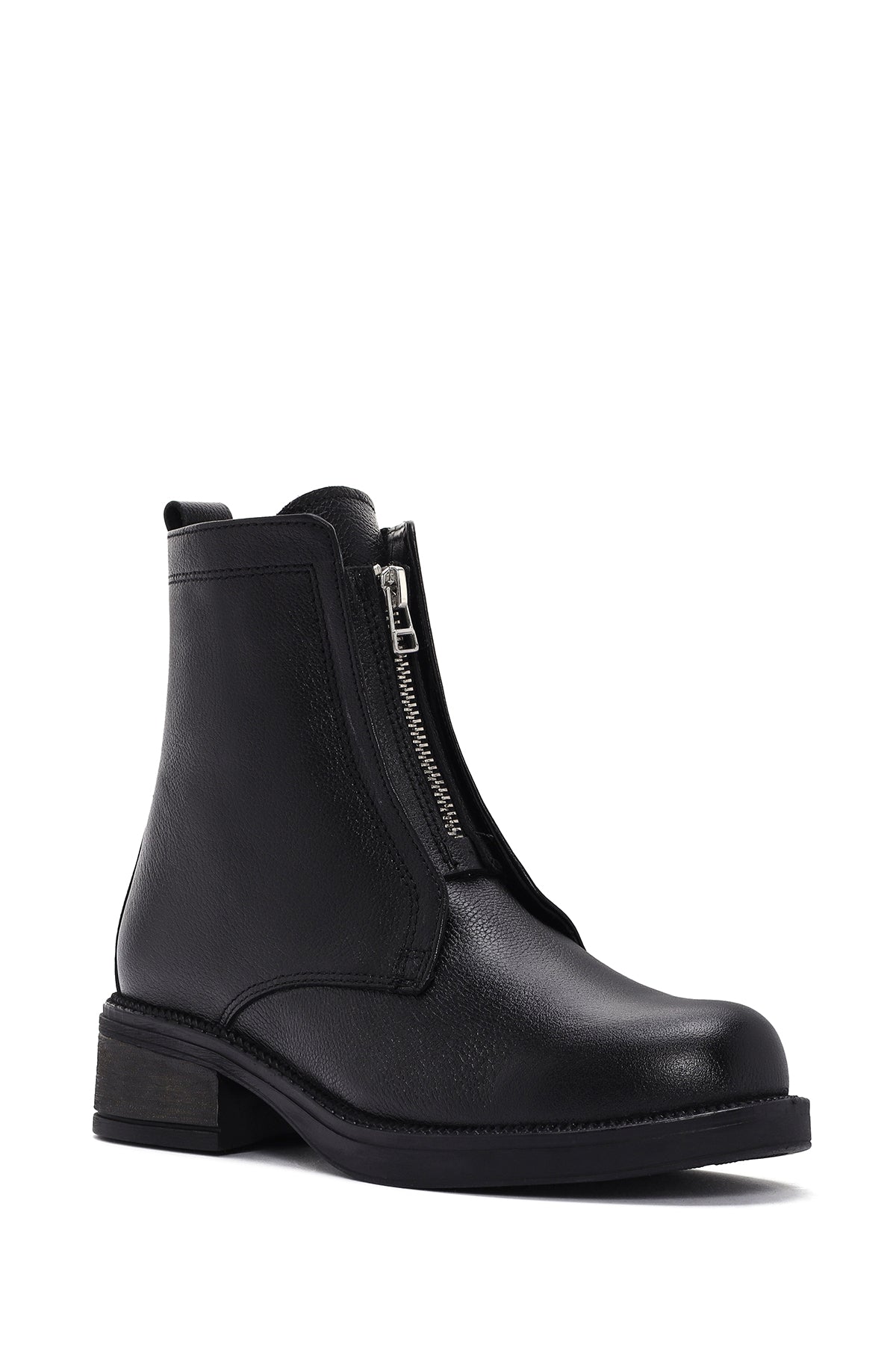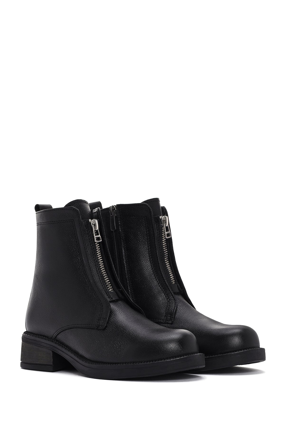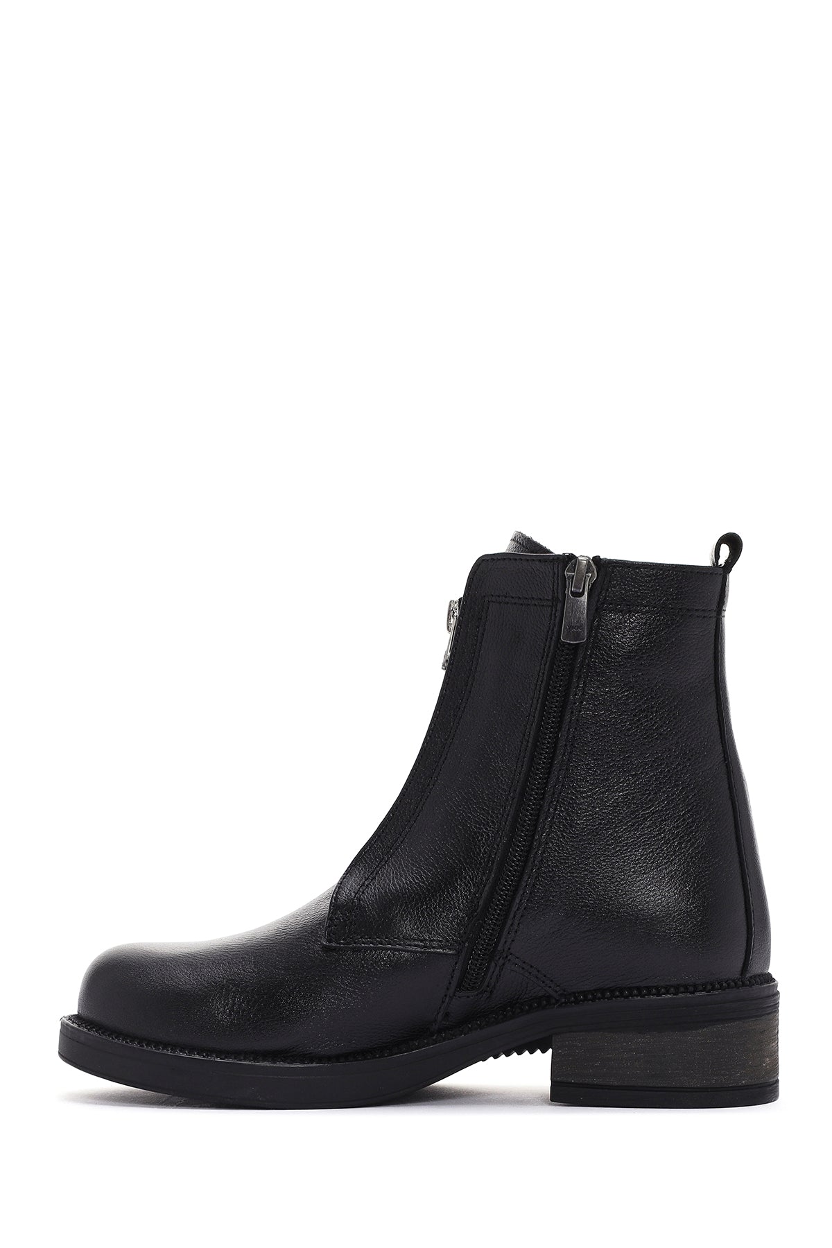 Kadın Siyah Deri Fermuarlı Postal Bot