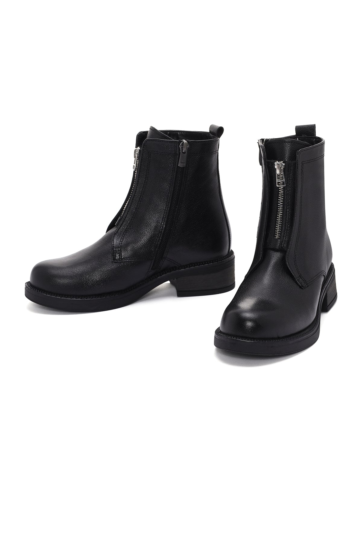 بوت زیپ دار چرمی مشکی زنانه دری مد