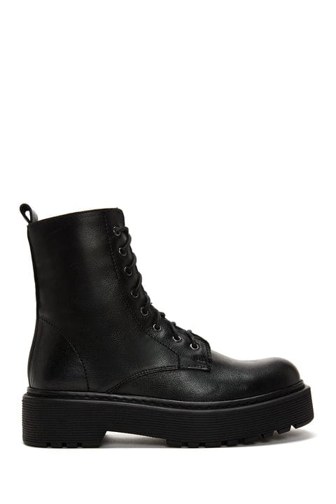 Kadın Siyah Deri Fermuarlı Postal Bot