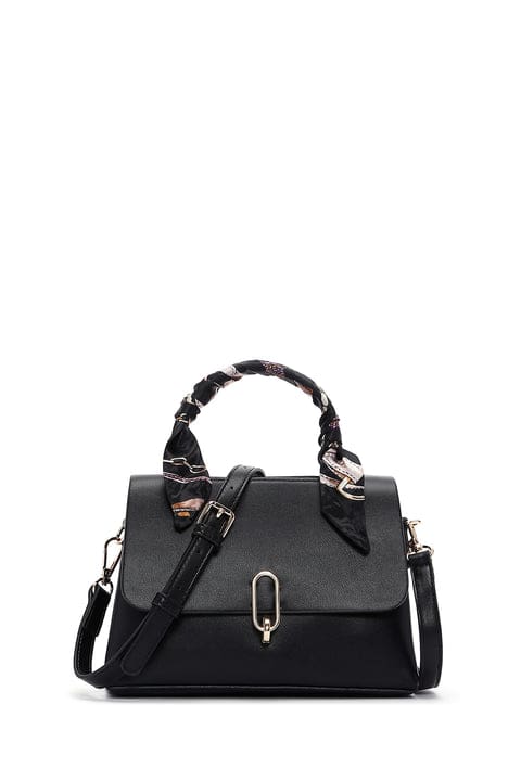 کیف دستی بند بلند مشکی زنانه با جزئیات اکسسوری دری مد