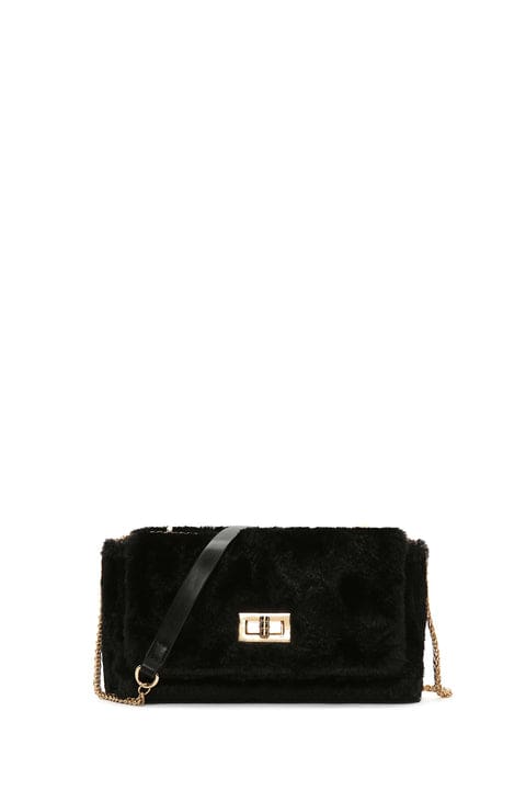 Kadın Siyah Uzun Askılı Peluş Çapraz Çanta