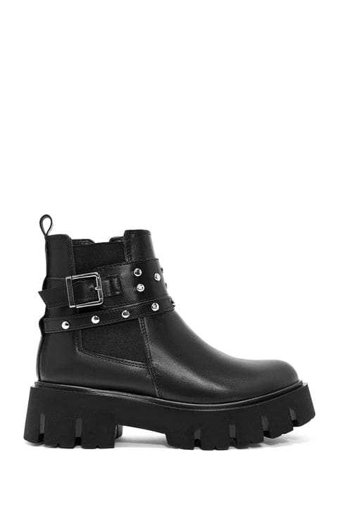 Kadın Siyah Fermuarlı Metal Detaylı Bot