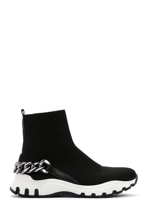 Kadın Siyah Zincir Aksesuarlı Bilekli Sneaker Bot
