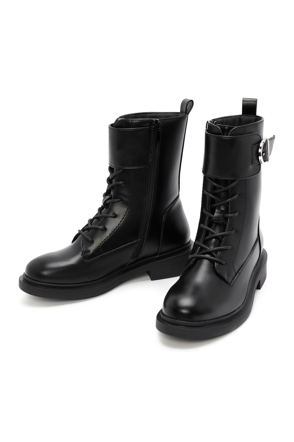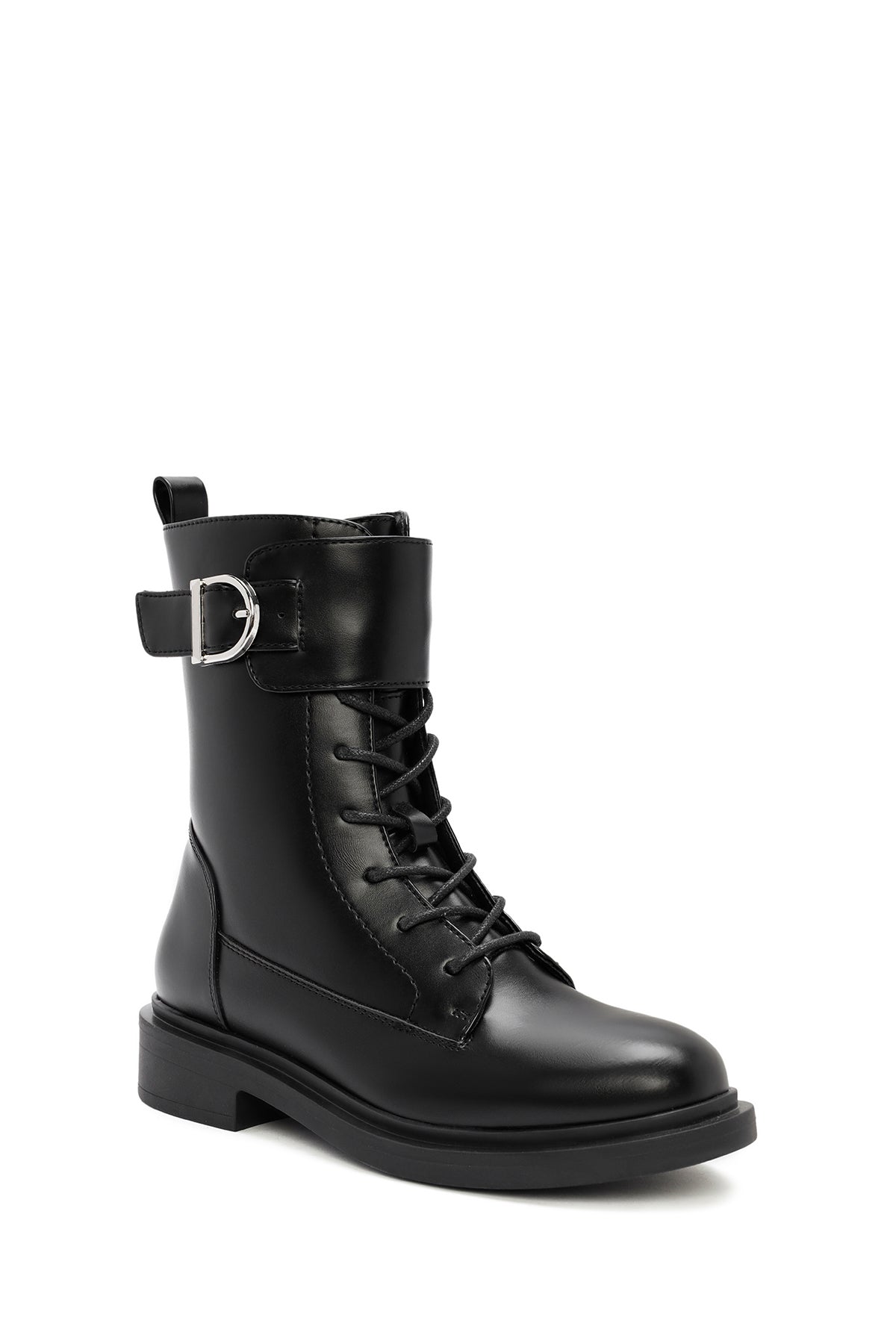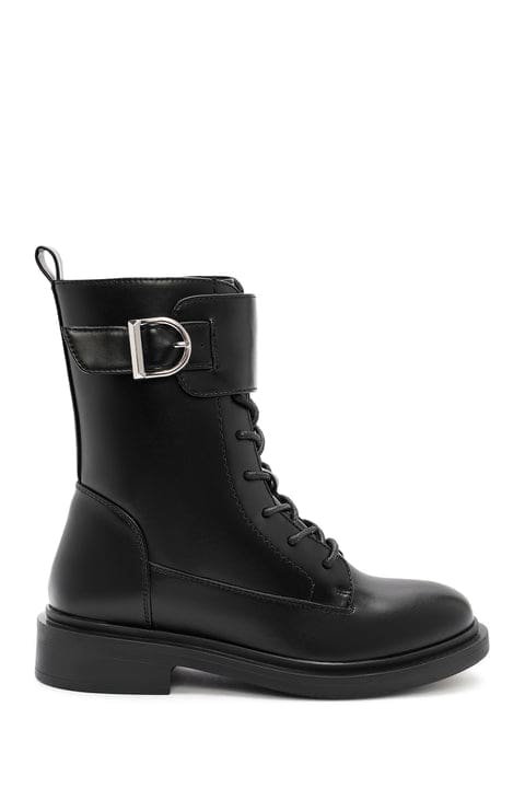 Kadın Siyah Fermuarlı Bağcıklı Postal Bot