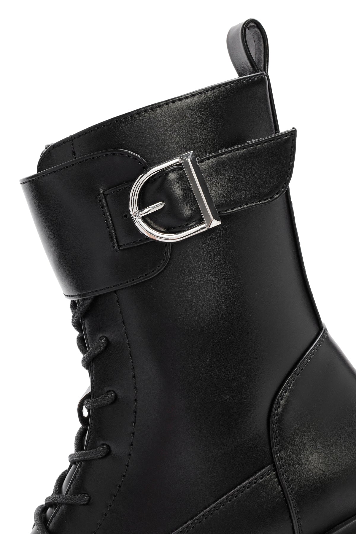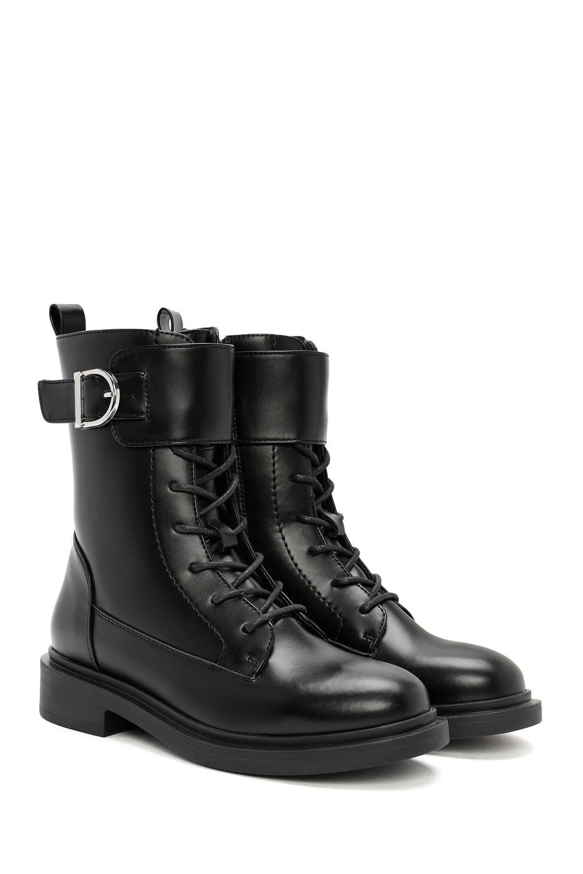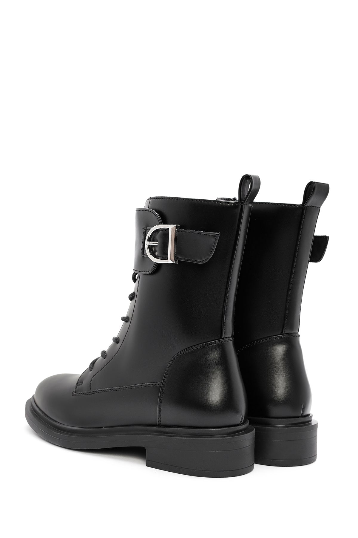 Kadın Siyah Fermuarlı Bağcıklı Postal Bot
