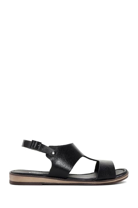 Kadın Siyah Bilekten Bantlı Deri Bodrum Sandaleti