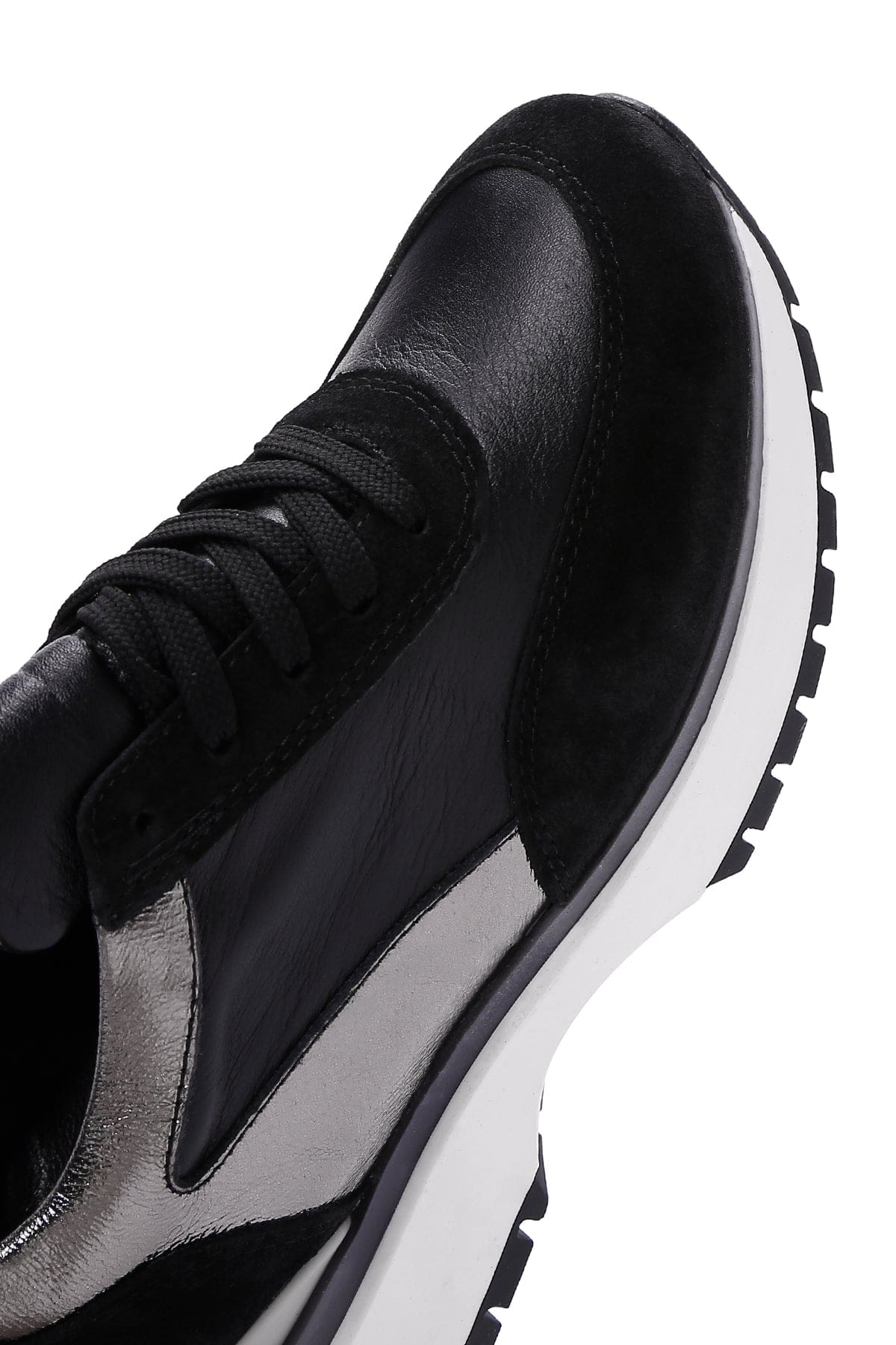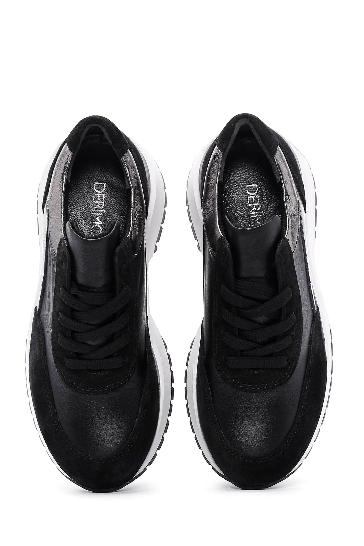 Kadın Siyah Bağcıklı Deri Sneaker