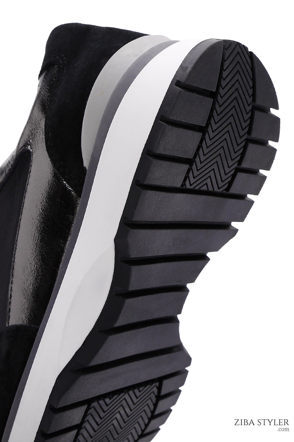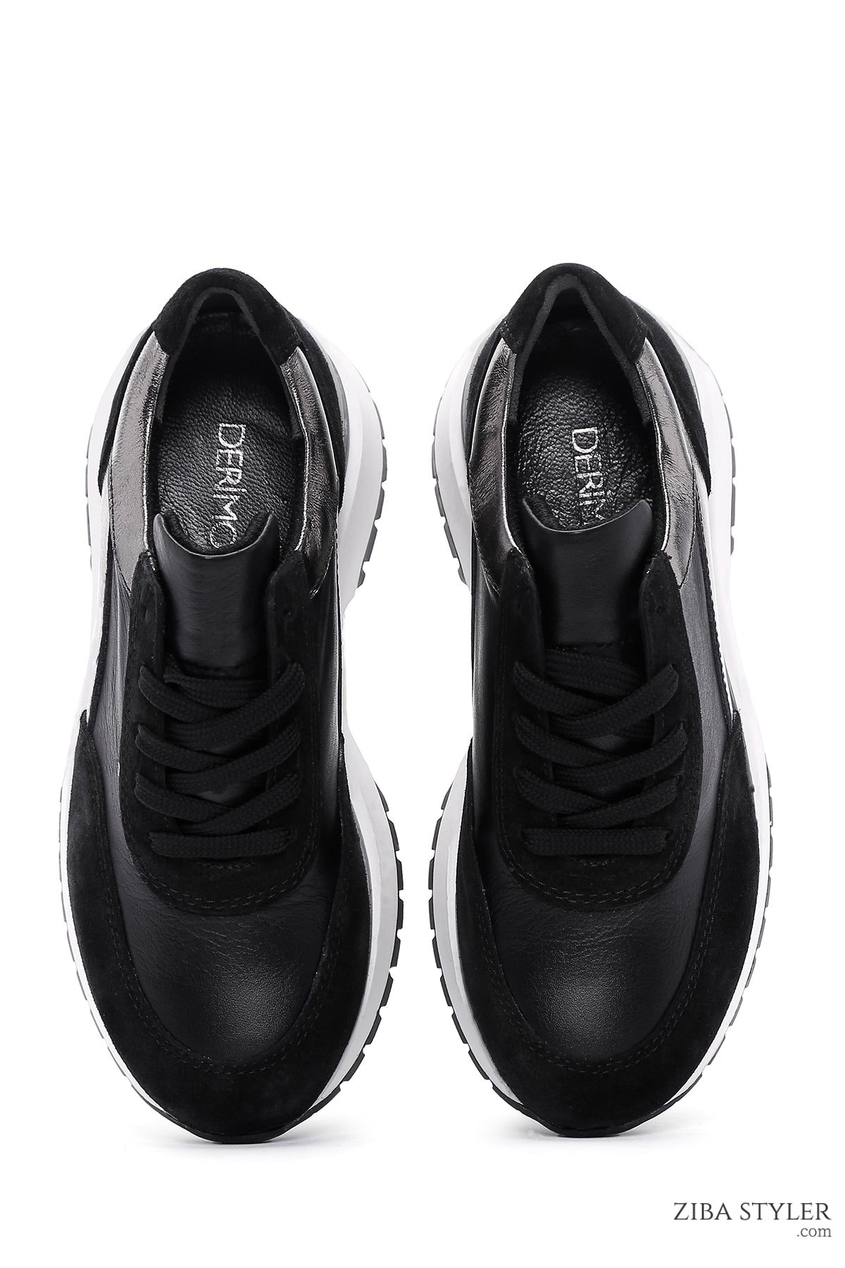 کتونی چرمی بند دار مشکی زنانه دری مد