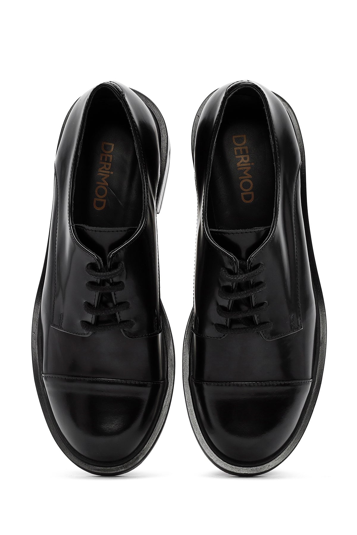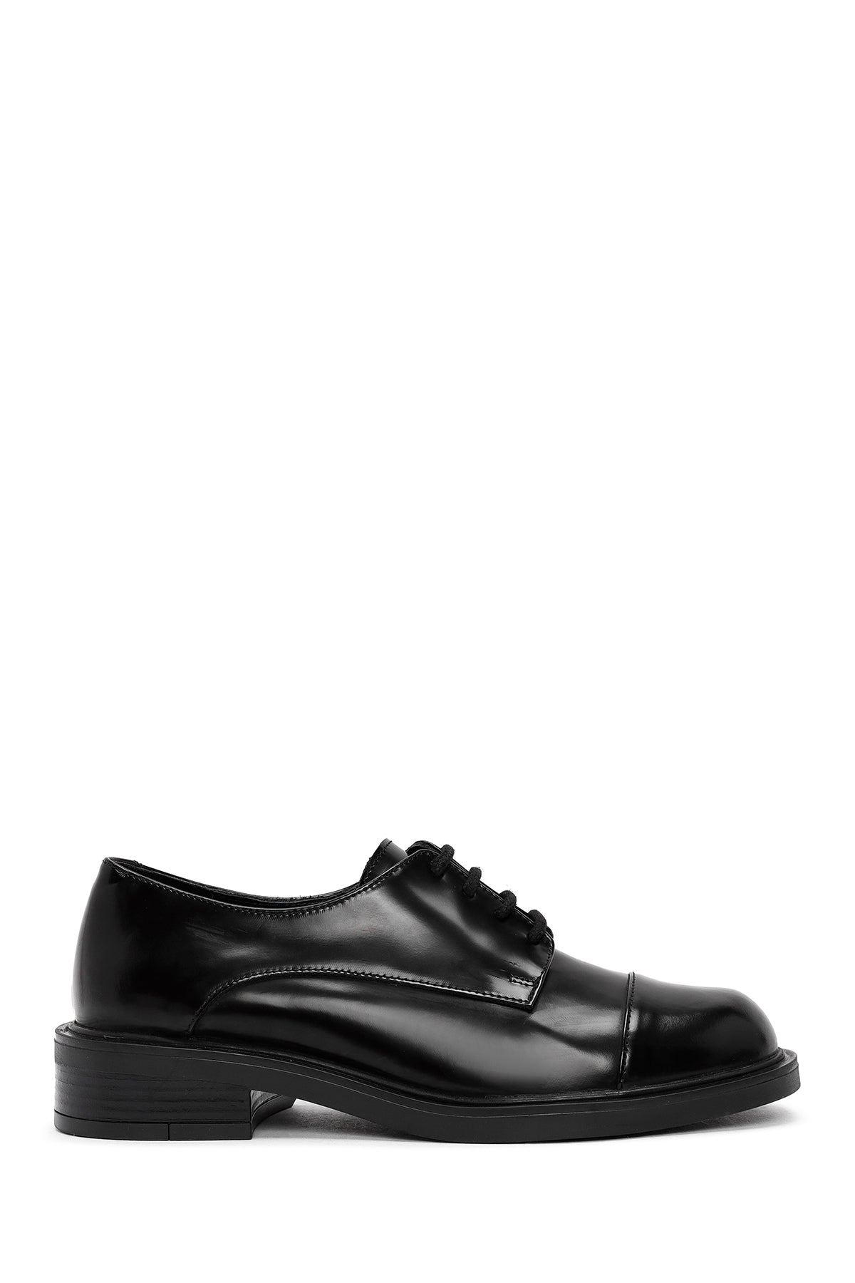 Kadın Siyah Bağcıklı Deri Klasik Ayakkabı