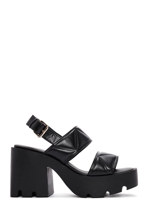 Kadın Siyah Bilekten Bantlı Kalın Topuklu Sandalet