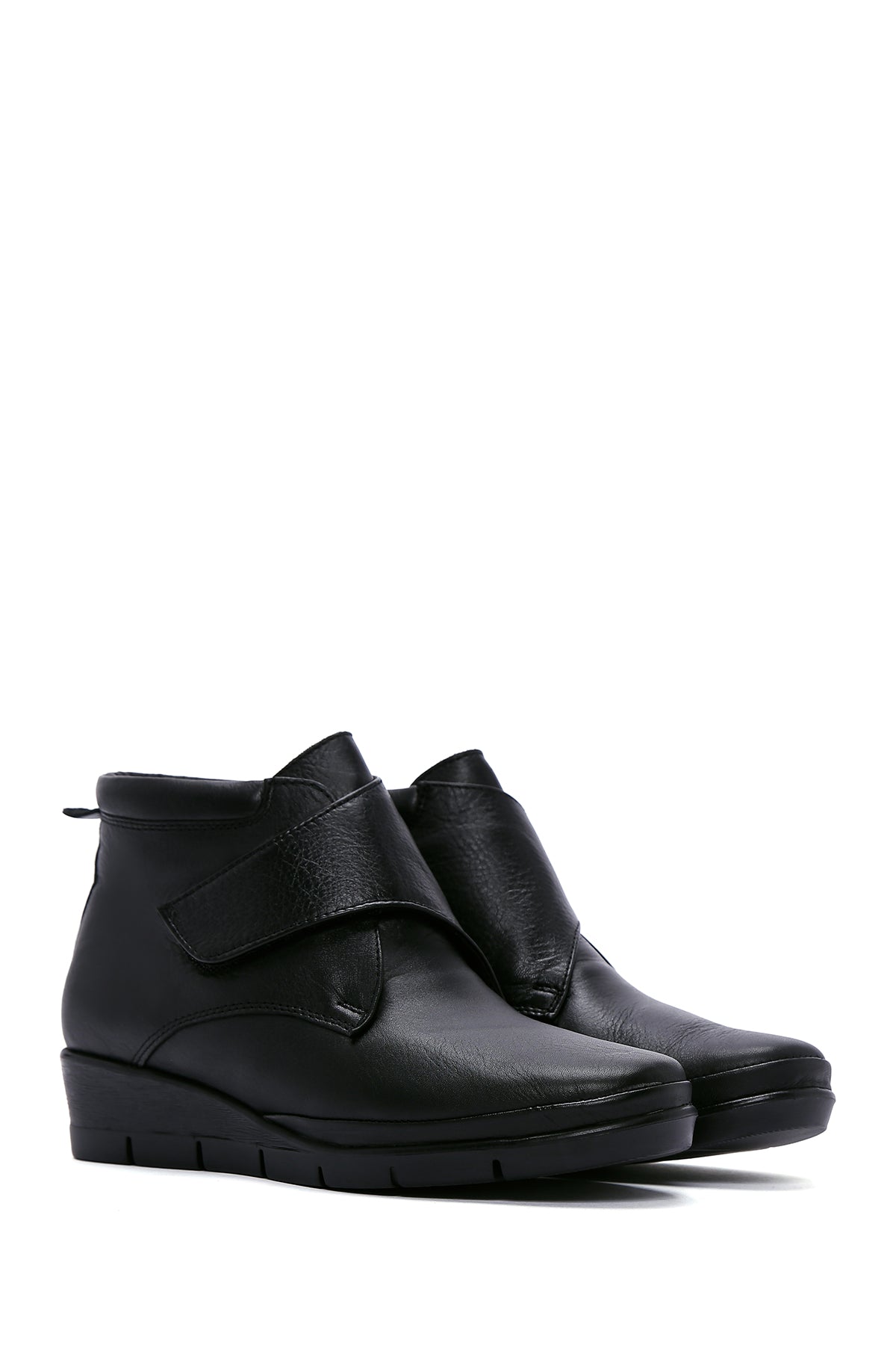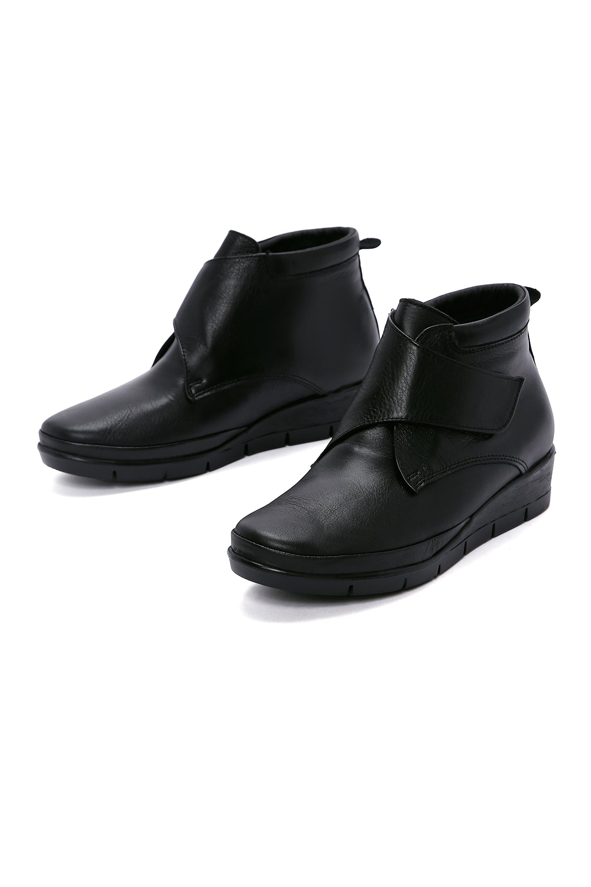 Kadın Siyah Bantlı Deri Comfort Bot