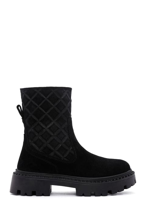 Kadın Siyah Fermuarlı Süet Deri Bot