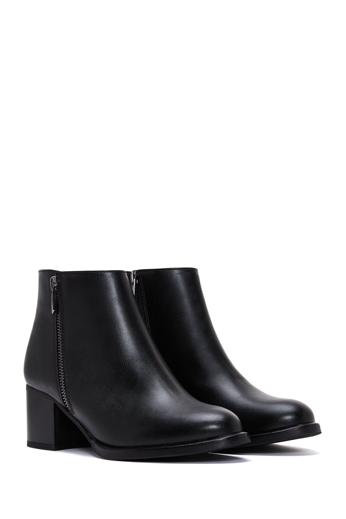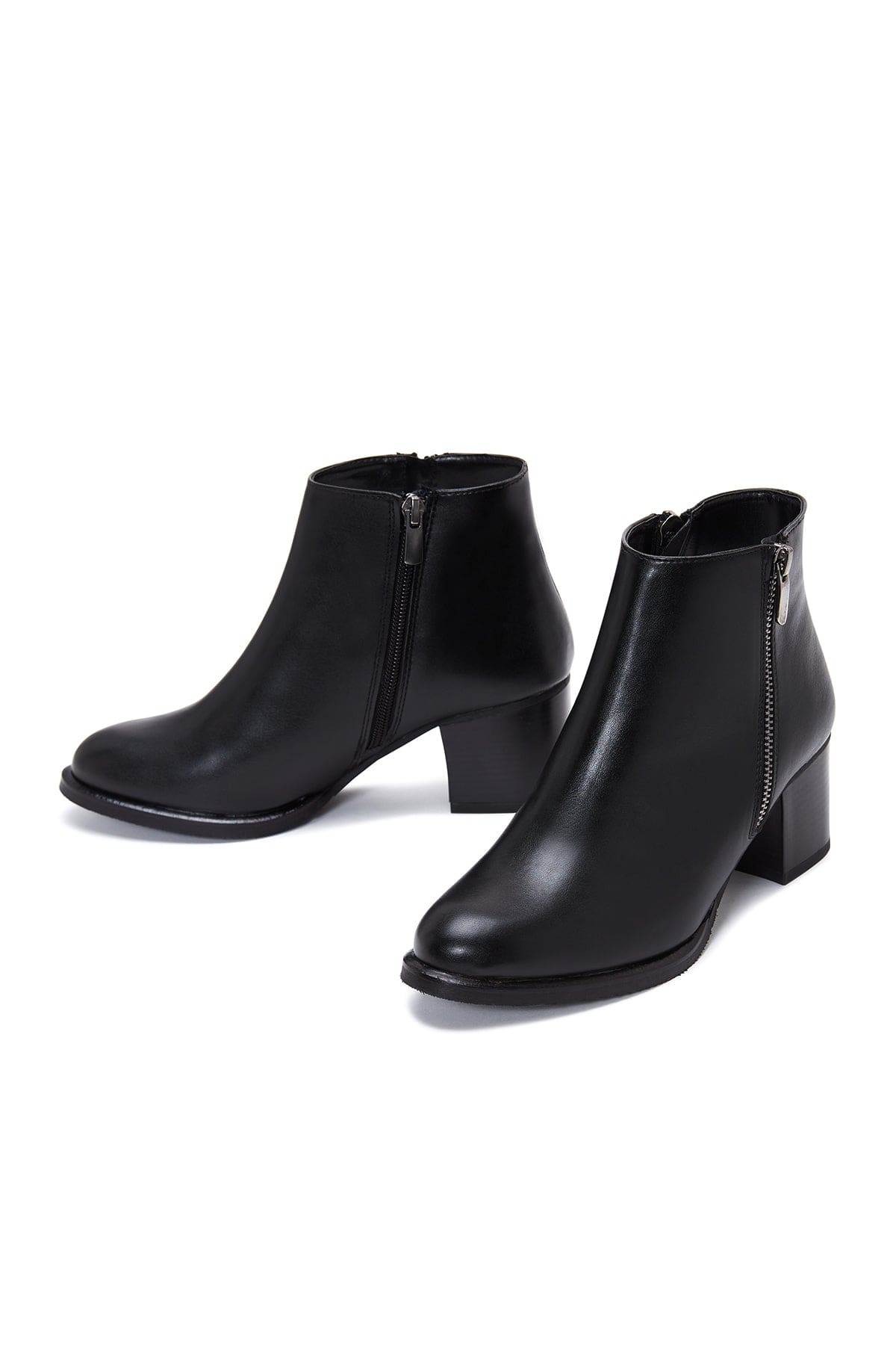 Kadın Siyah Fermuarlı Kalın Topuklu Bot