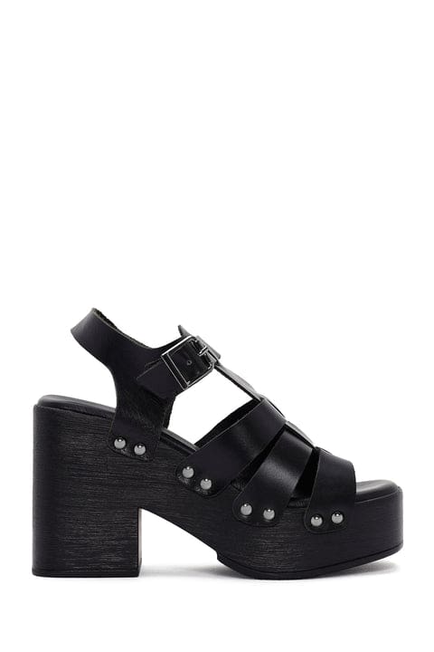 Kadın Siyah Kalın Topuklu Tokalı Deri Sandalet