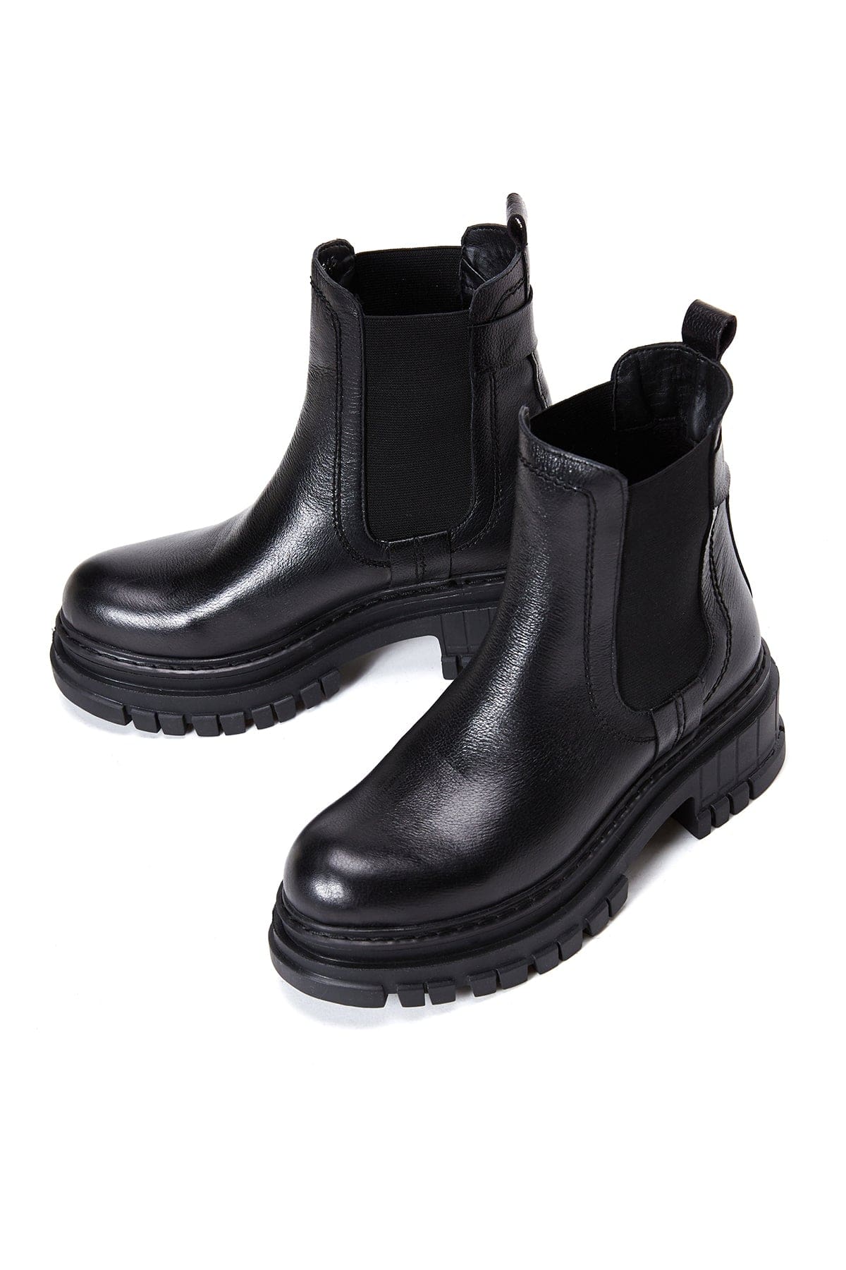 Kadın Siyah Kalın Topuklu Deri Chelsea Bot