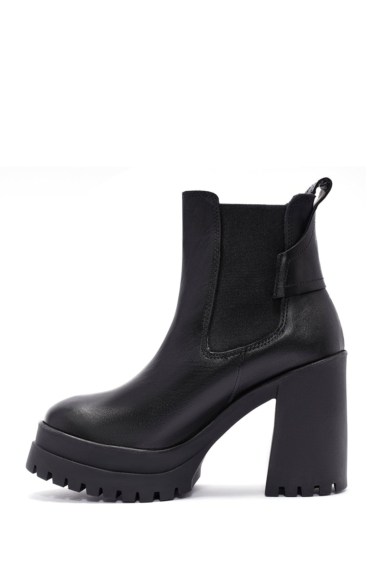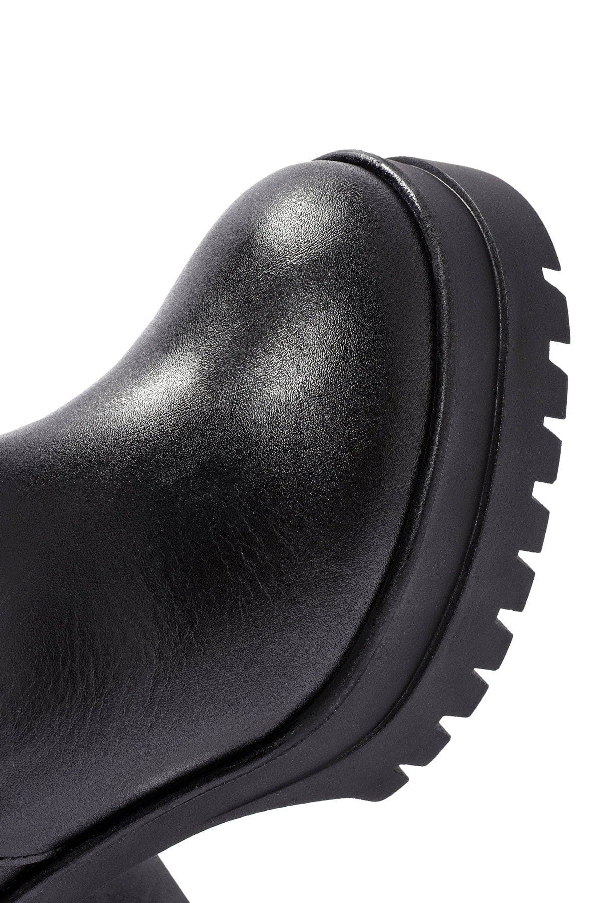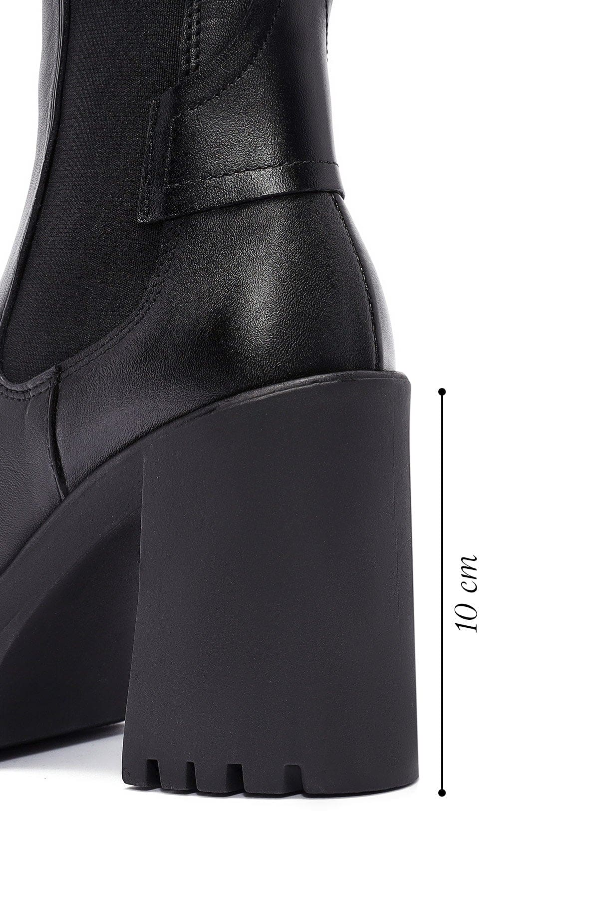 Kadın Siyah Kalın Topuklu Deri Chelsea Bot