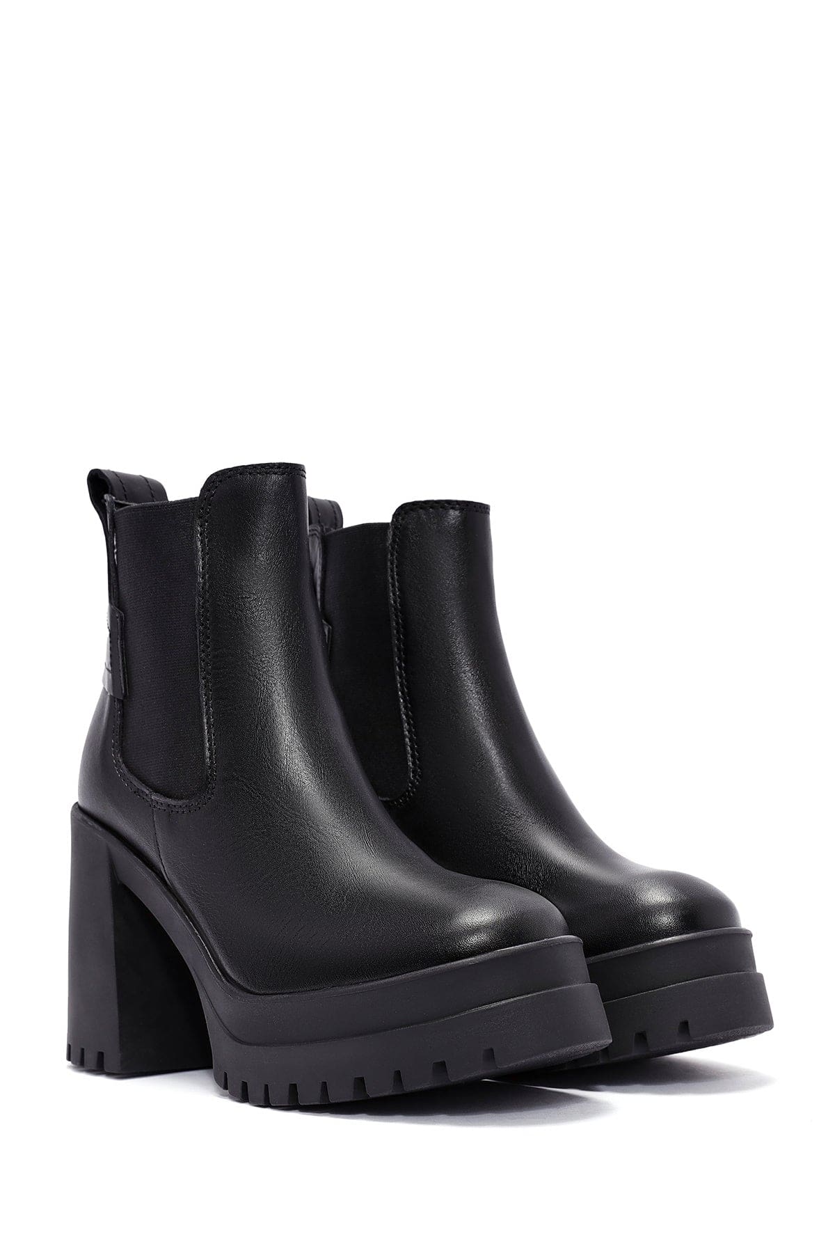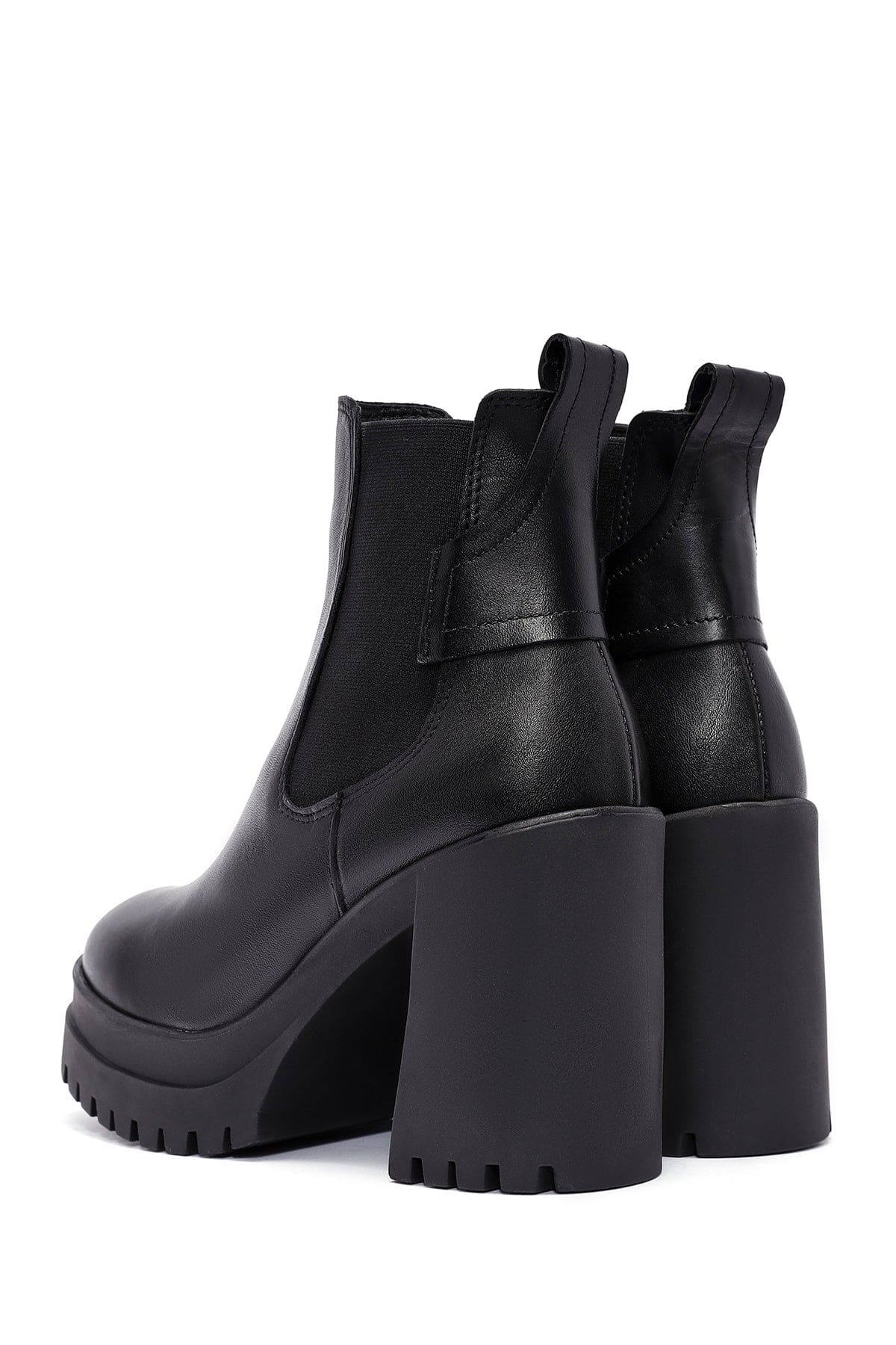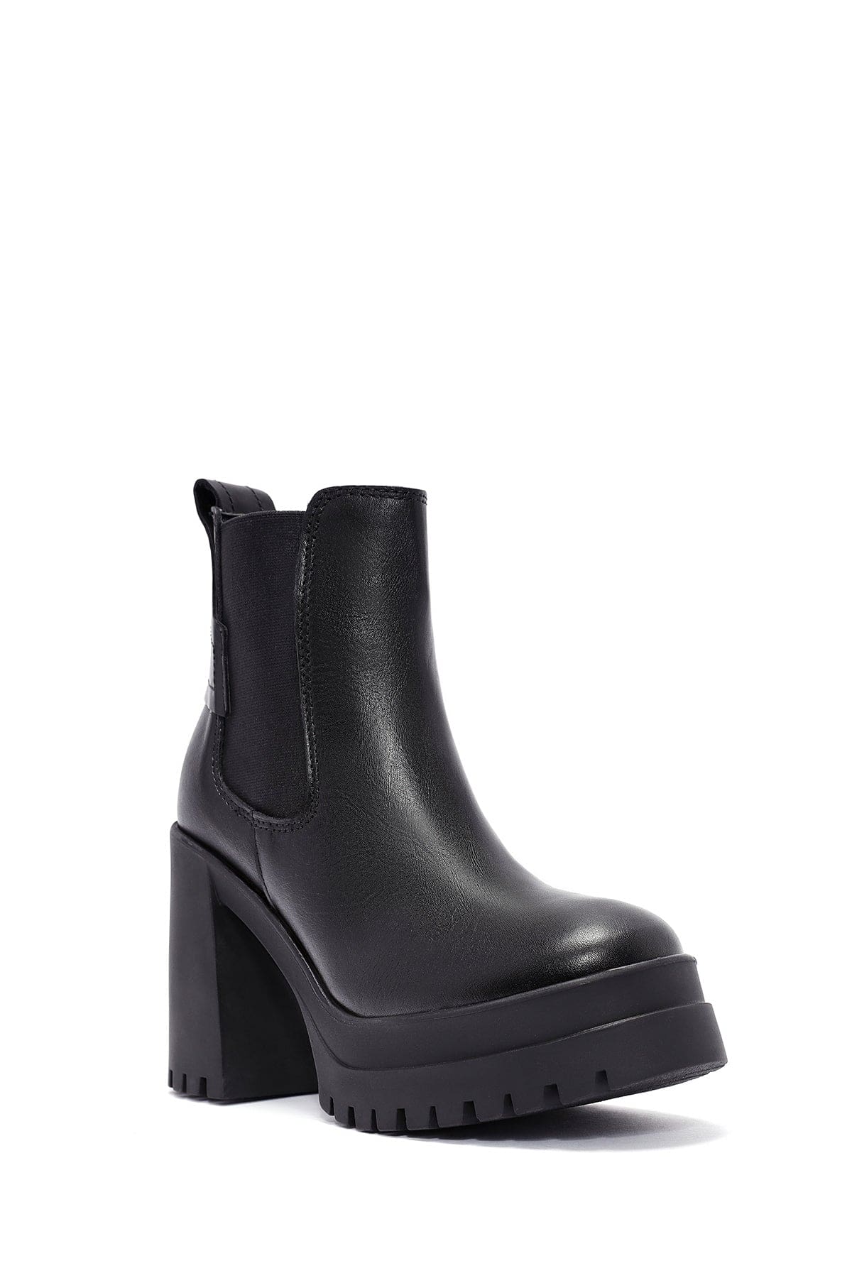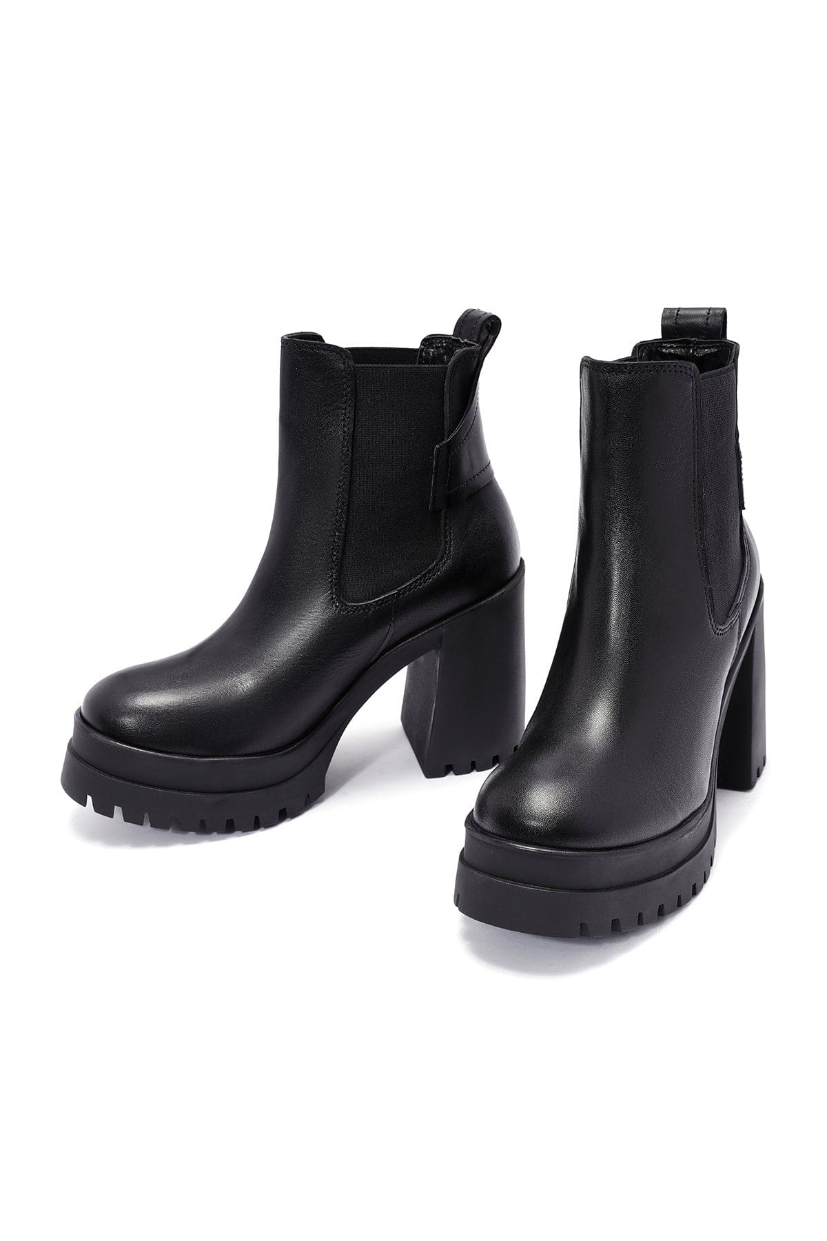 Kadın Siyah Kalın Topuklu Deri Chelsea Bot