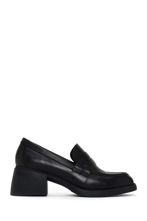 Kadın Siyah Kalın Topuklu Deri Maskülen Loafer