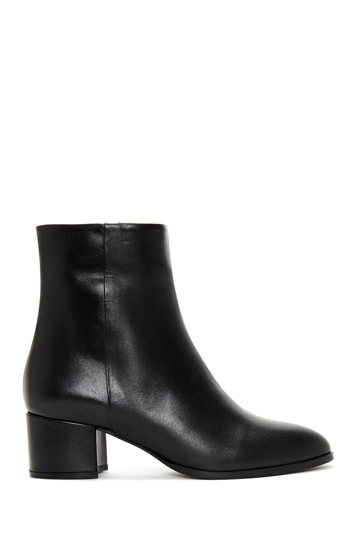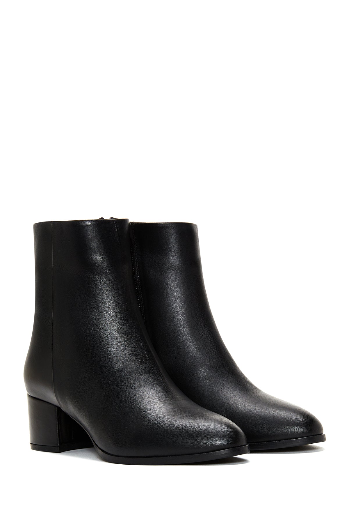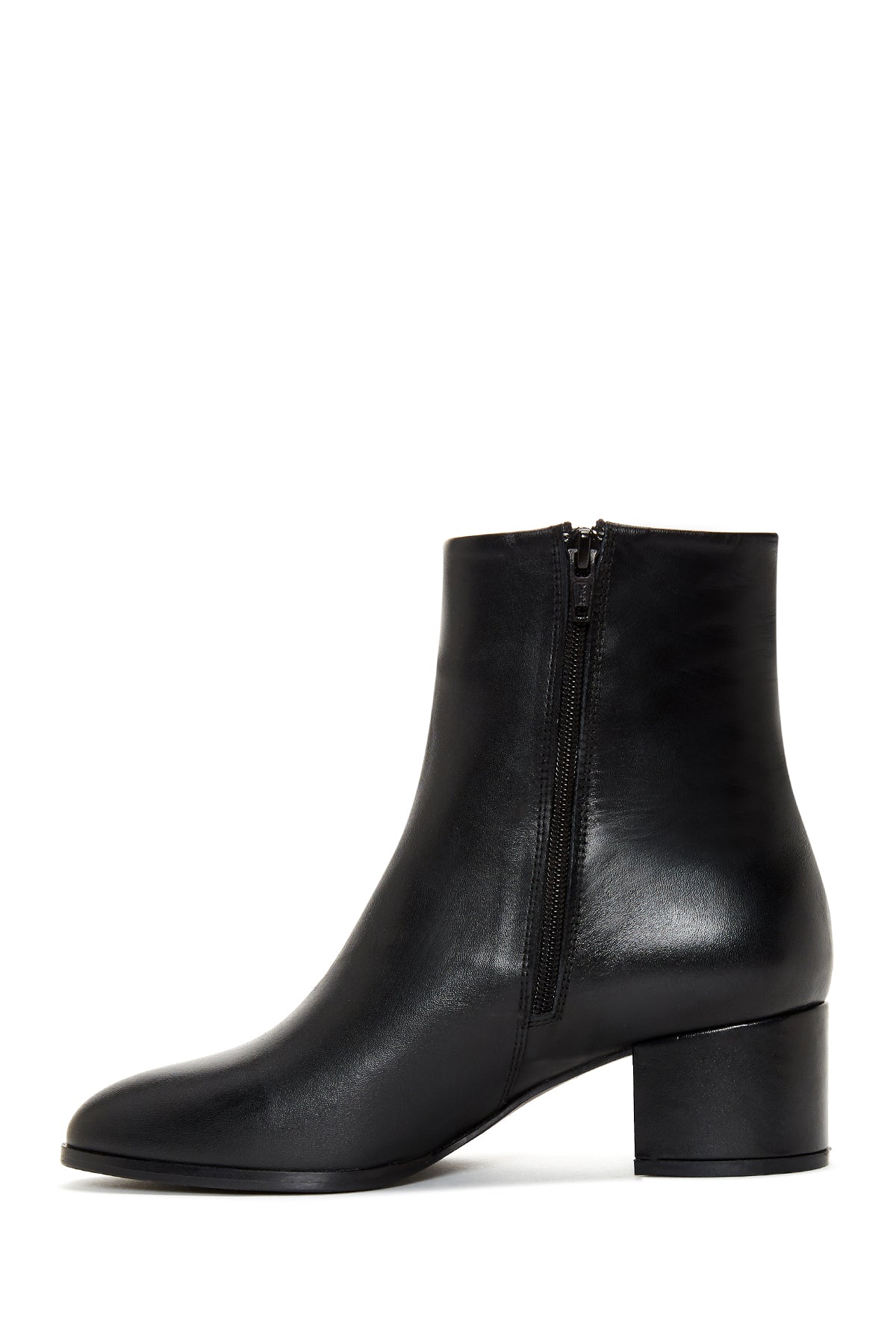 Kadın Siyah Fermuarlı Kısa Kalın Topuklu Deri Bot