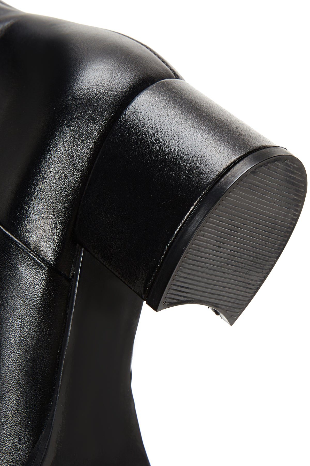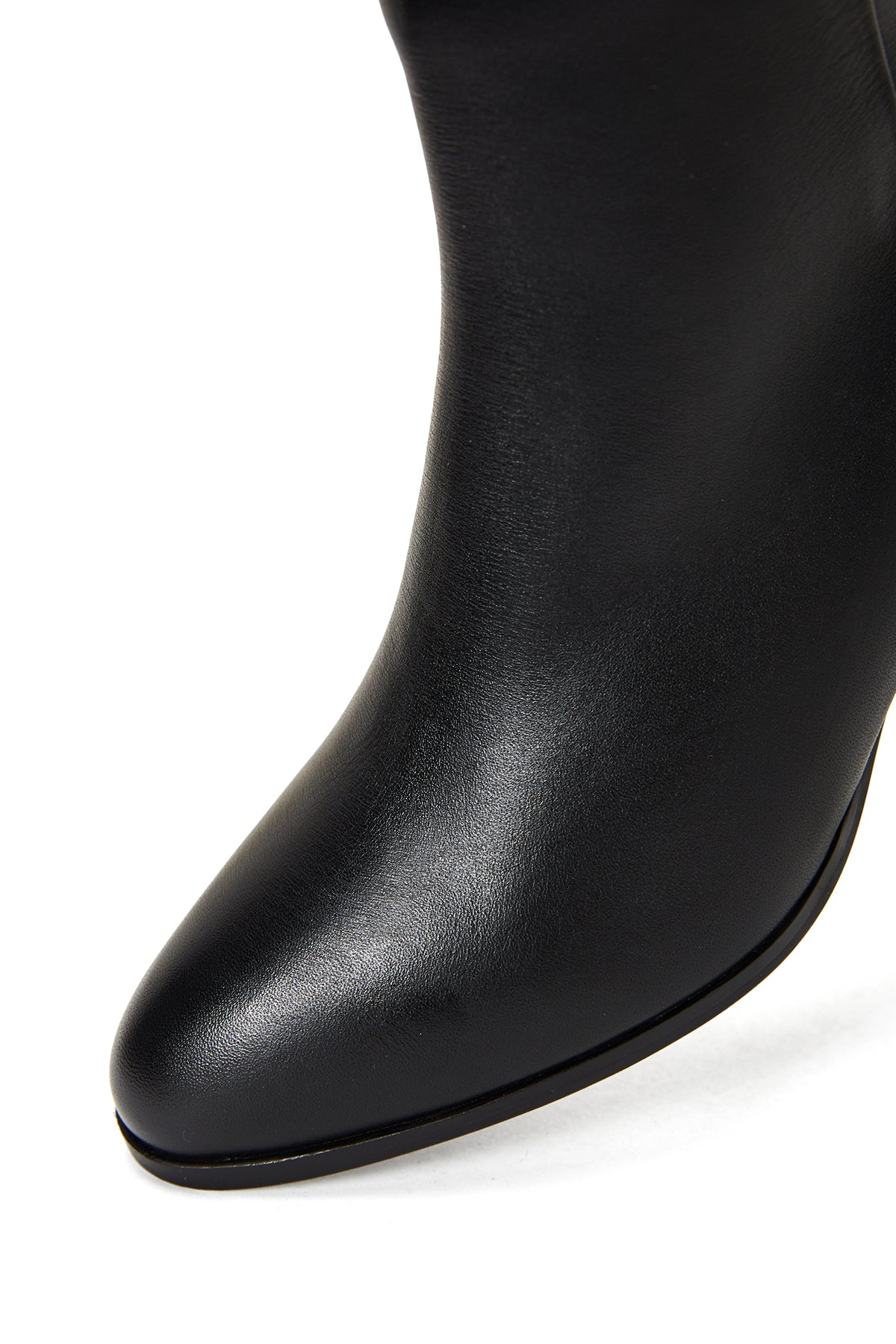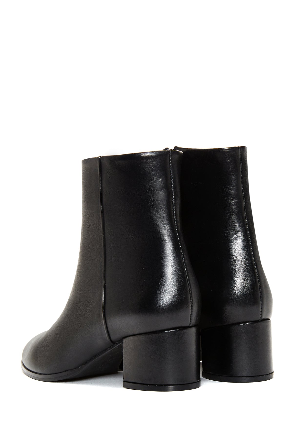 Kadın Siyah Fermuarlı Kısa Kalın Topuklu Deri Bot