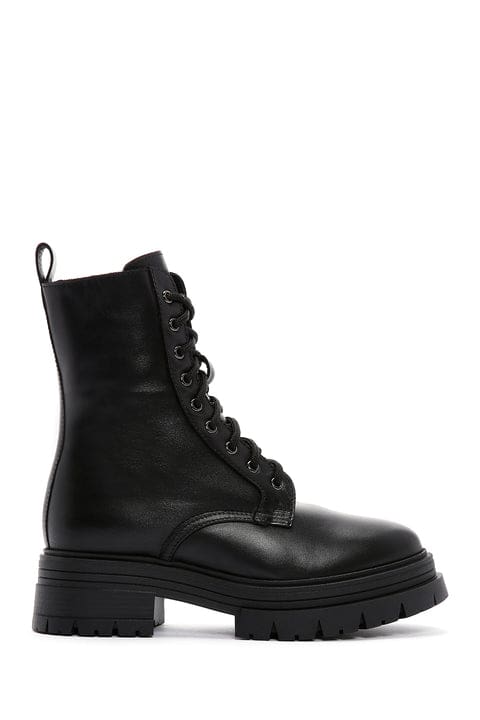 Kadın Siyah Kalın Tabanlı Deri Postal Bot