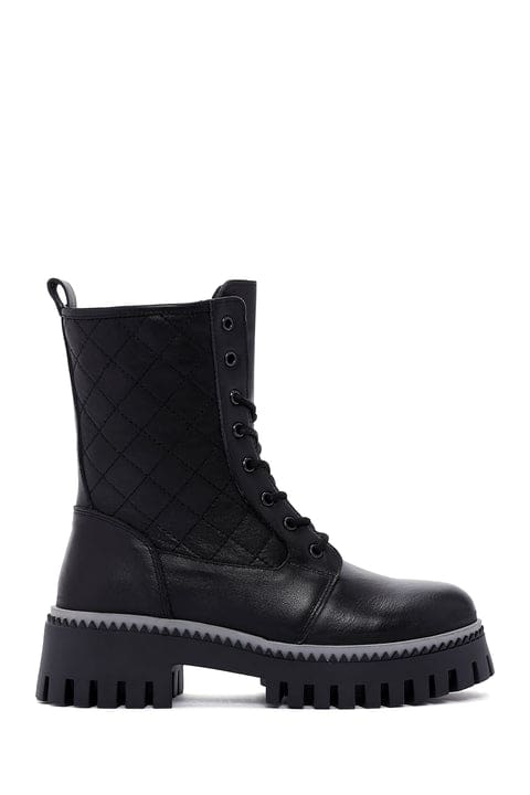 Kadın Siyah Kalın Tabanlı Deri Postal Bot