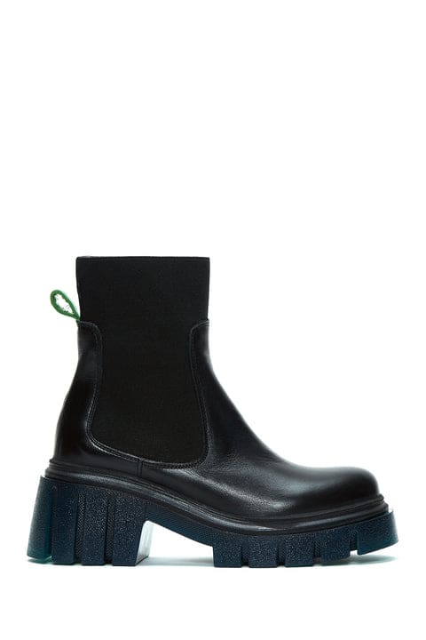 Kadın Siyah Kalın Tabanlı Deri Bot