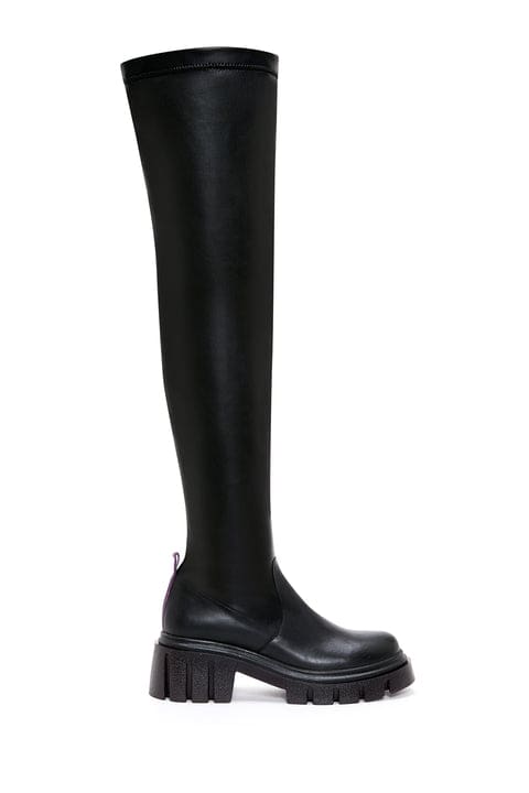 Kadın Siyah Kalın Tabanlı Deri Çizme