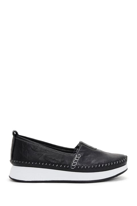 Kadın Siyah Kalın Tabanlı Deri Comfort Loafer