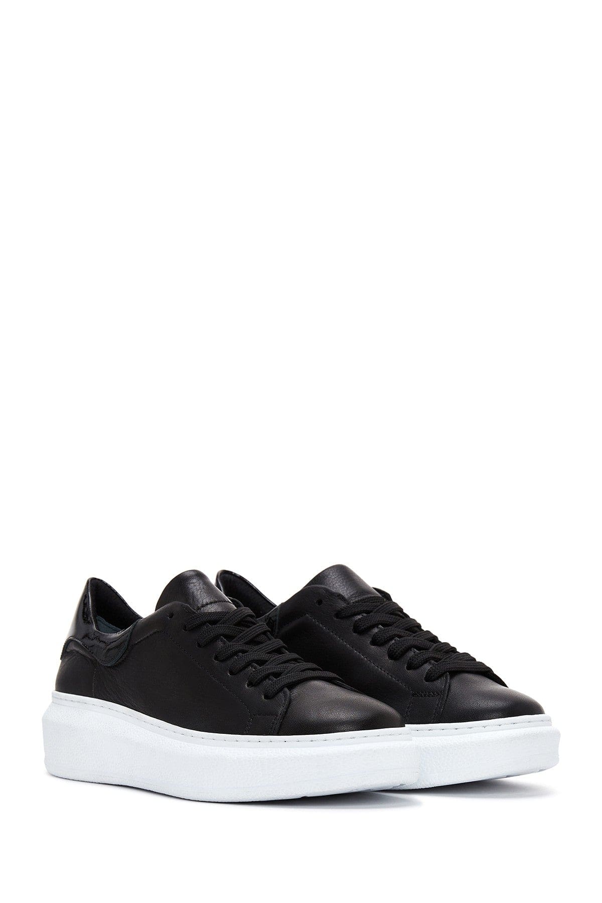 Kadın Siyah Bağcıklı Kalın Taban Deri Sneaker