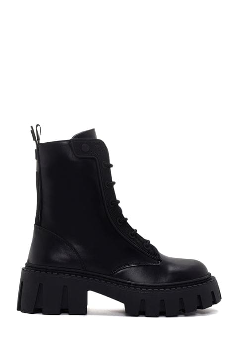 Kadın Siyah Kalın Tabanlı Fermuarlı Deri Postal Bot