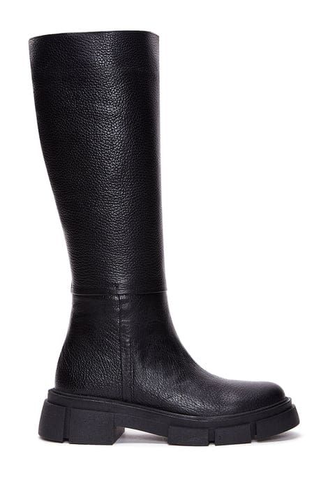 Kadın Siyah Deri Fermuarlı Kalın Tabanlı Çizme