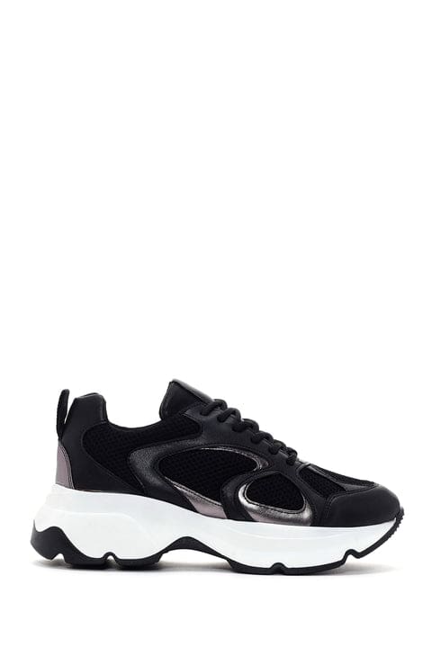 Kadın Siyah Kalın Tabanlı Bağcıklı Sneaker