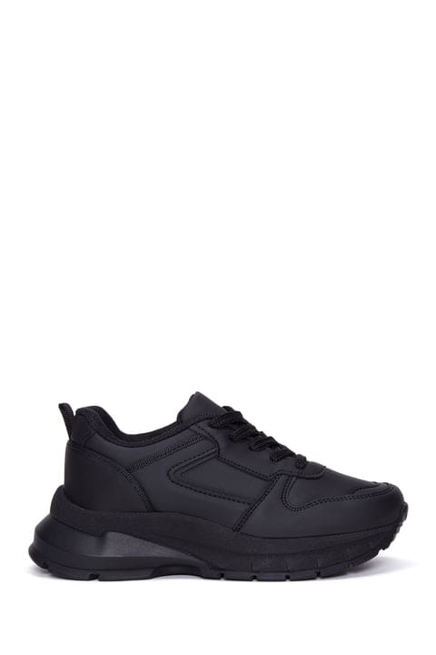 Kadın Siyah Kalın Tabanlı Bağcıklı Sneaker