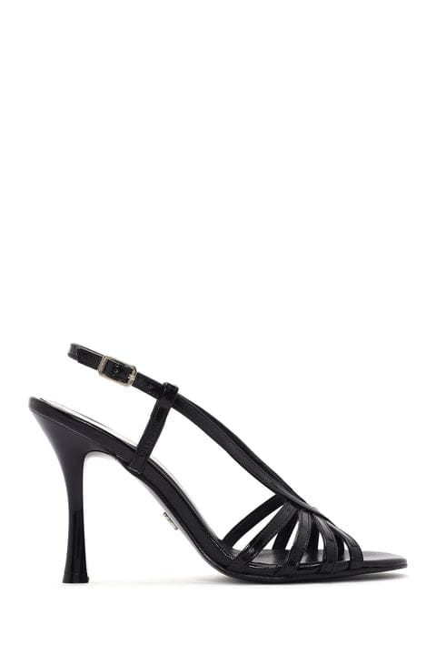 Kadın Siyah Bilekten Tokalı İnce Topuklu Deri Sandalet
