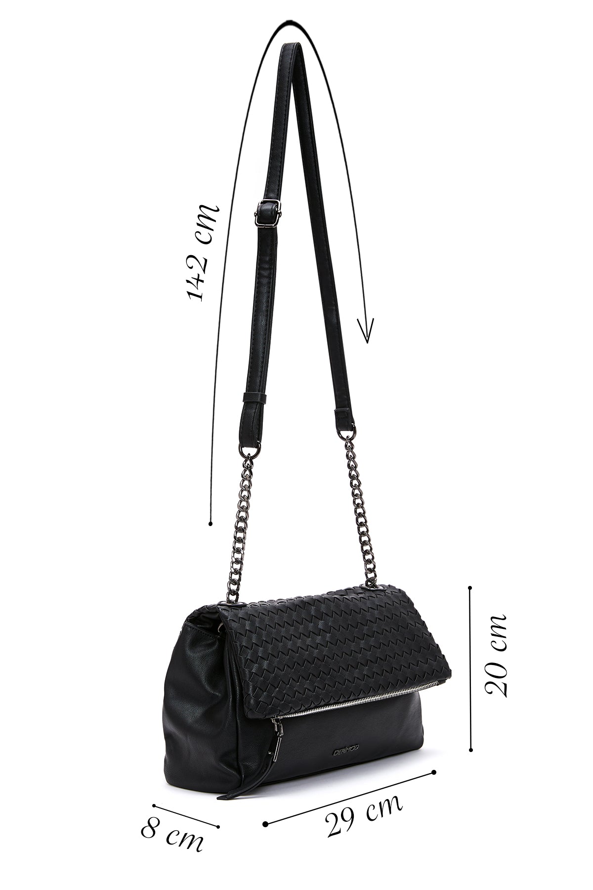 Kadın Siyah Uzun Askılı Örgülü Çapraz Çanta