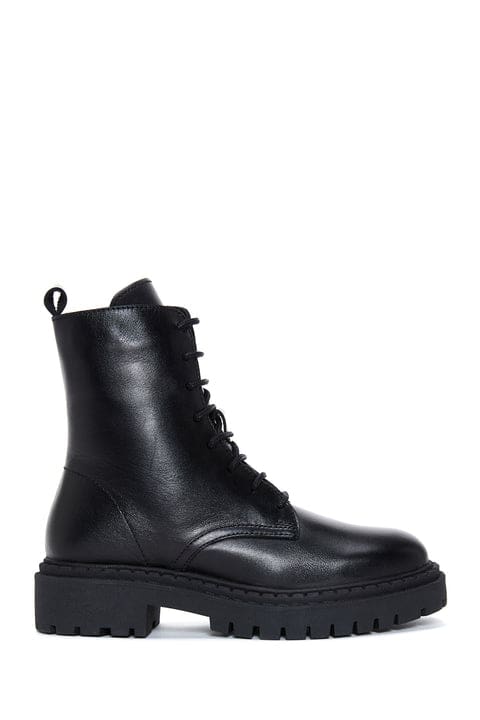 Kadın Siyah Deri Fermuarlı Düz Postal Bot
