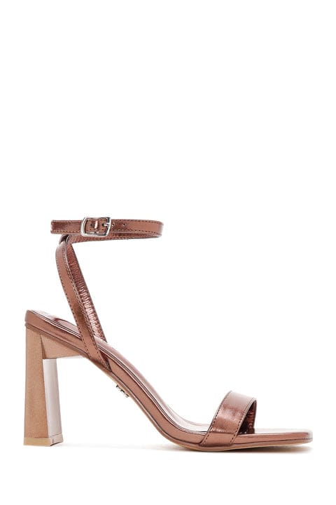 Kadın Bronz Metalik Tek Bant Topuklu Sandalet