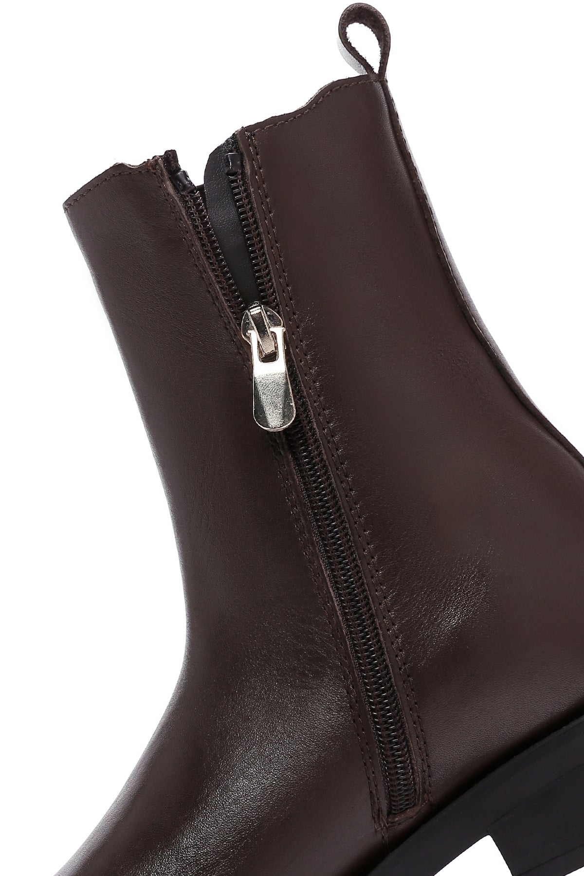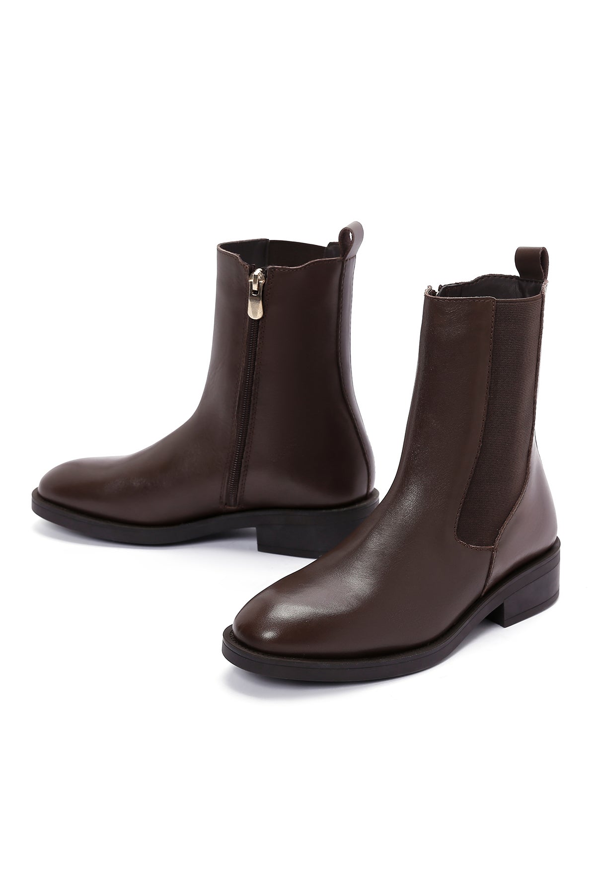 بوت زنانه چرم قهوه ای زیپ دار دری مد