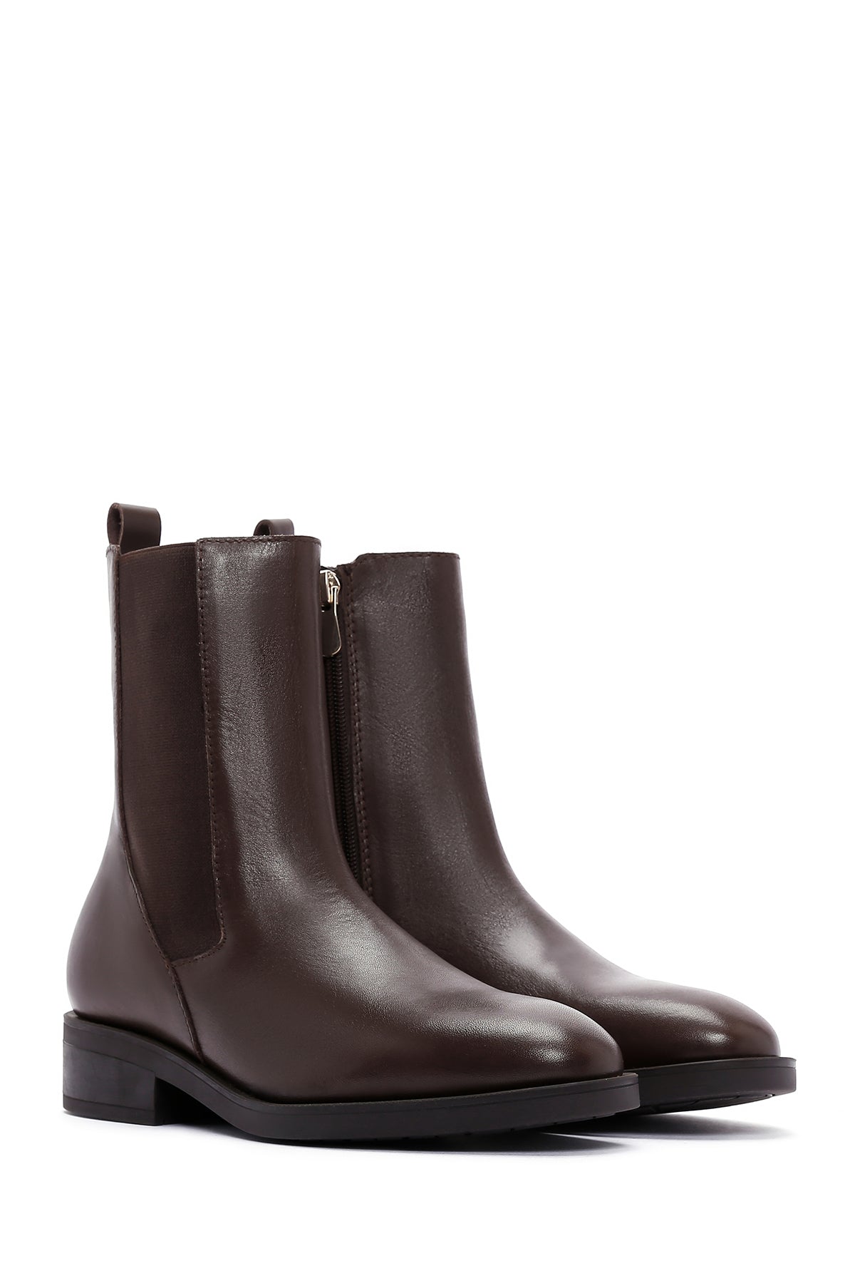 Kadın Kahverengi Fermuarlı Deri Casual Bot