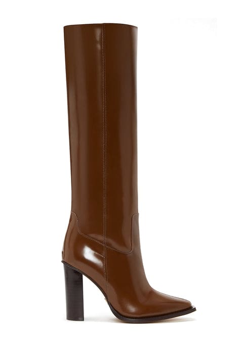 Kadın Kahverengi Deri Yüksek Topuklu Çizme