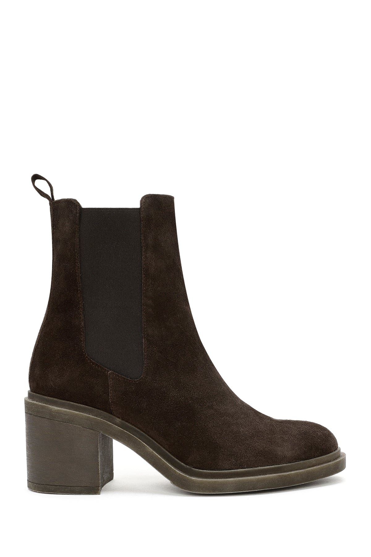 Kadın Kahverengi Kalın Topuklu Süet Deri Chelsea Bot