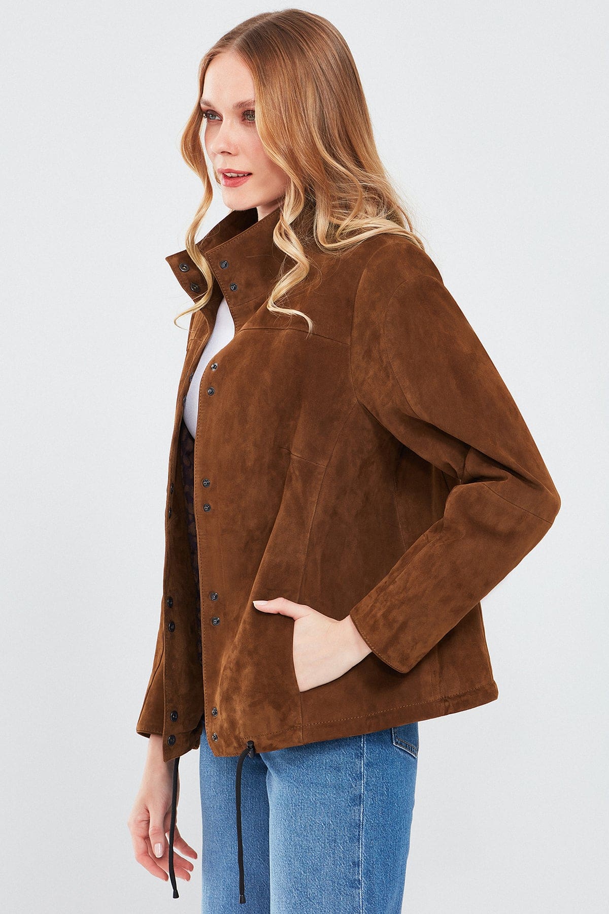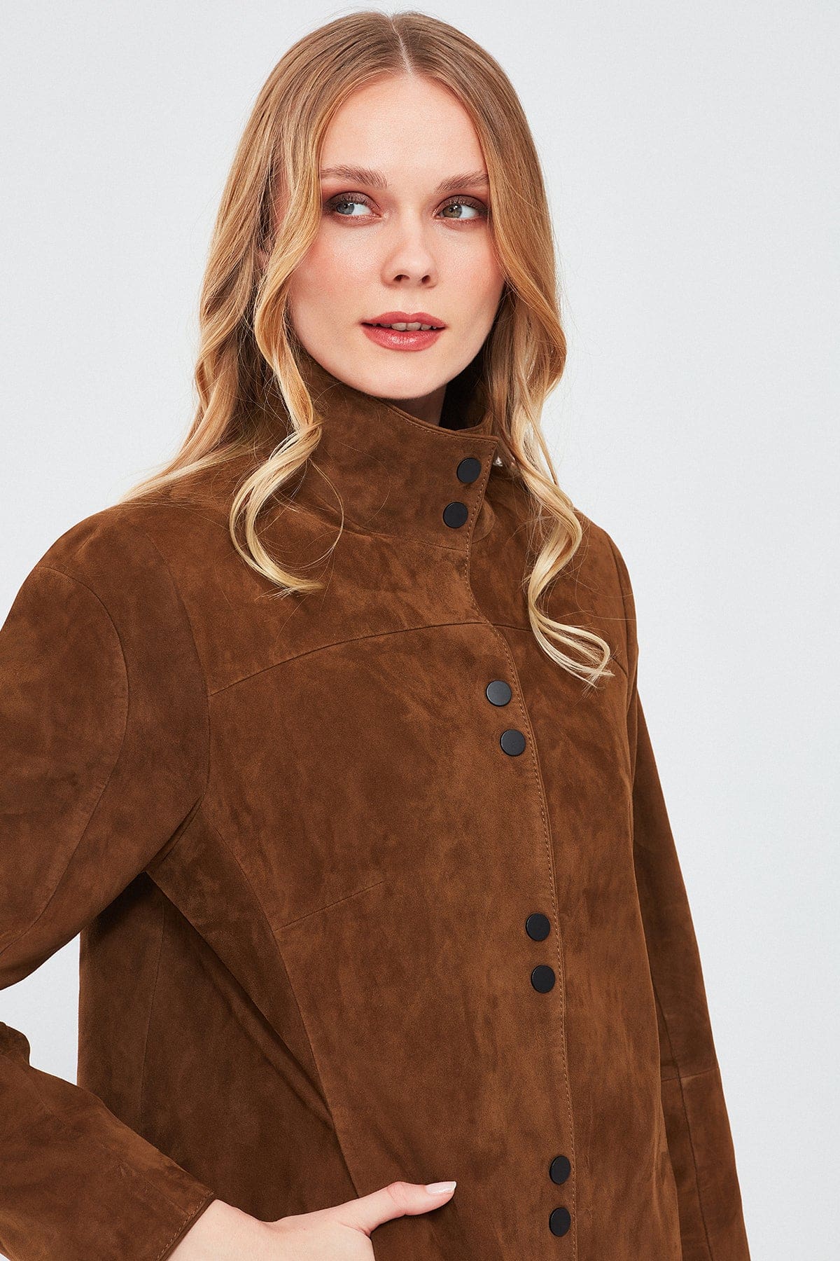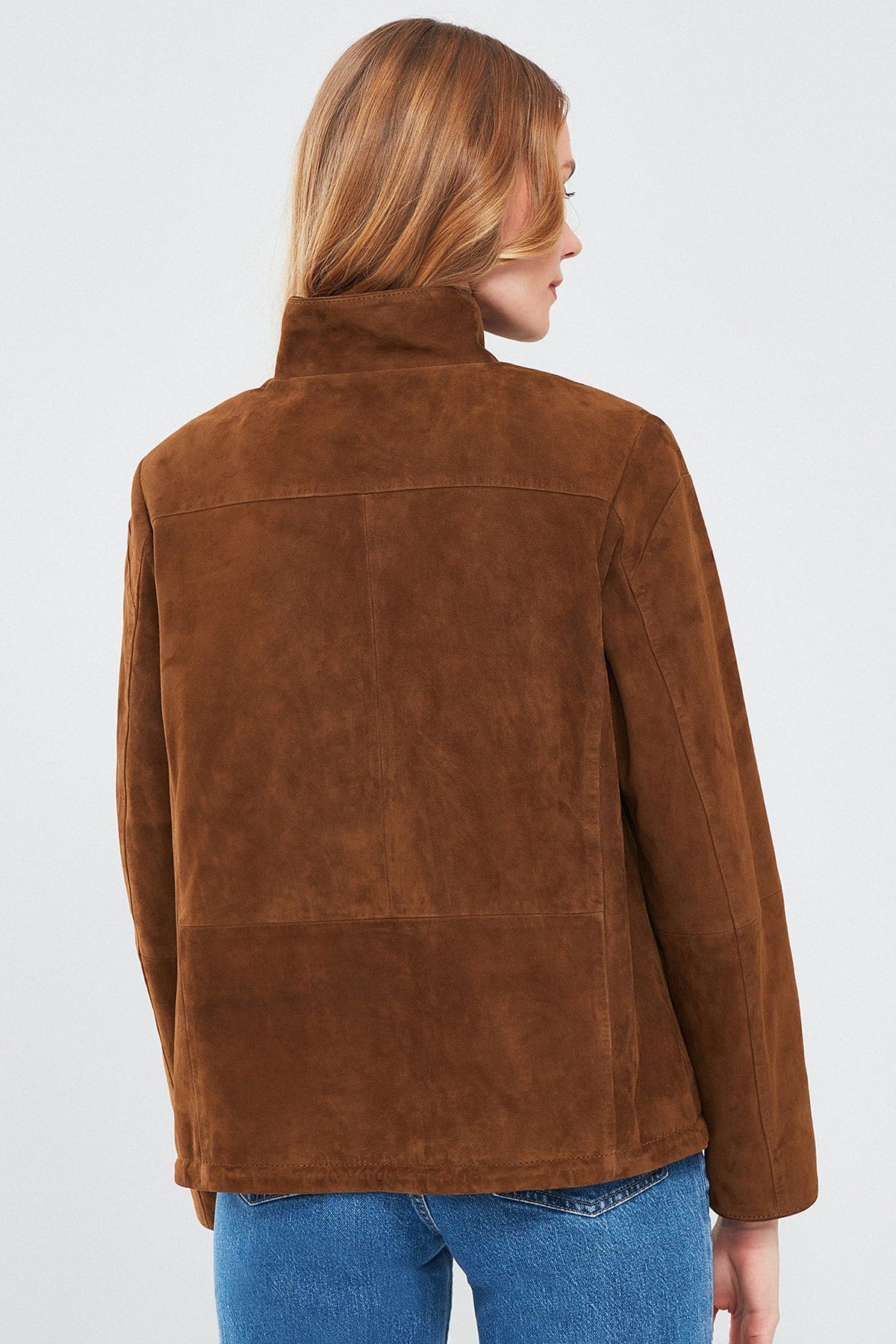 Lopez Kadın Kahverengi Oversize Süet Deri Ceket