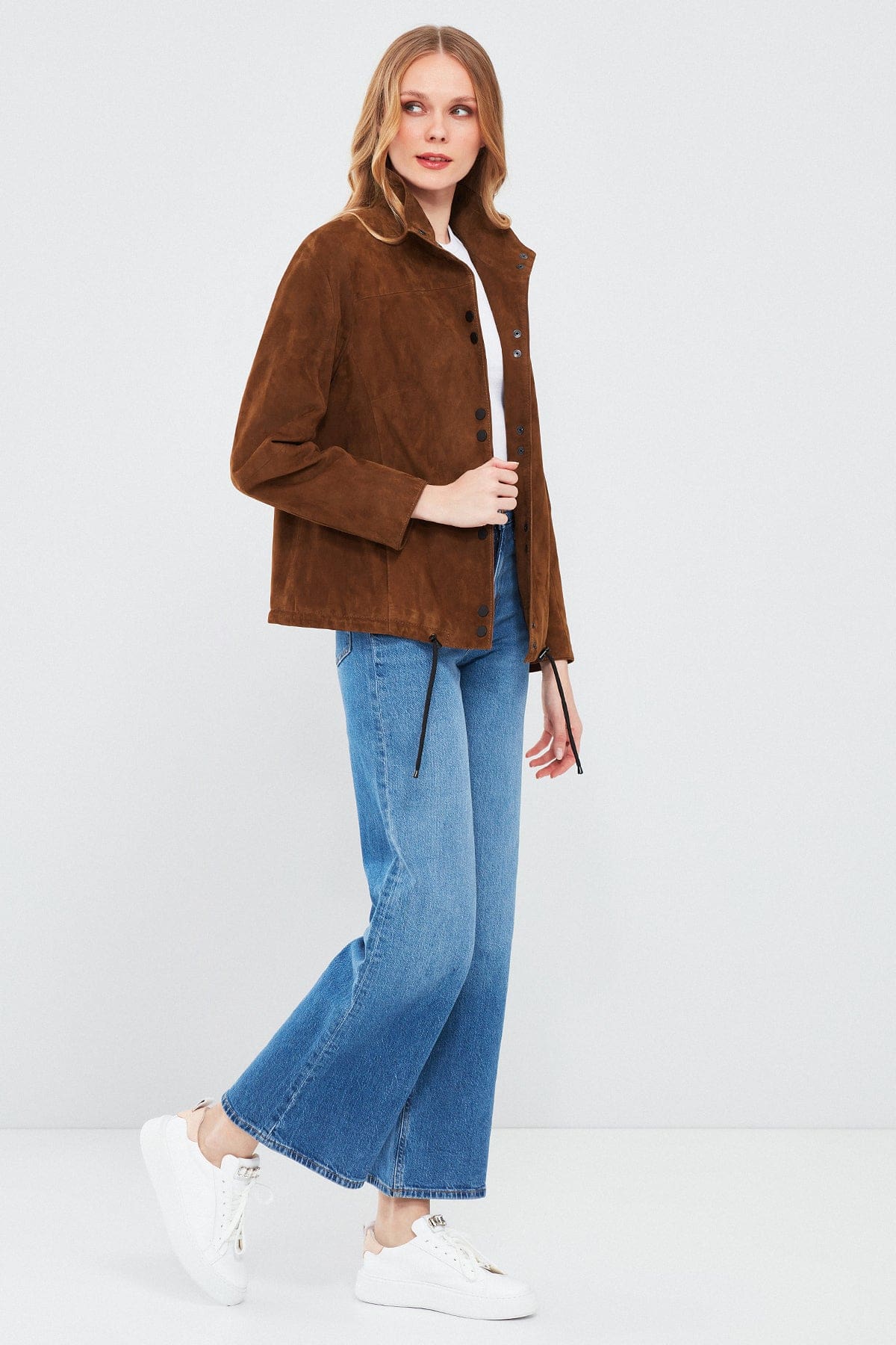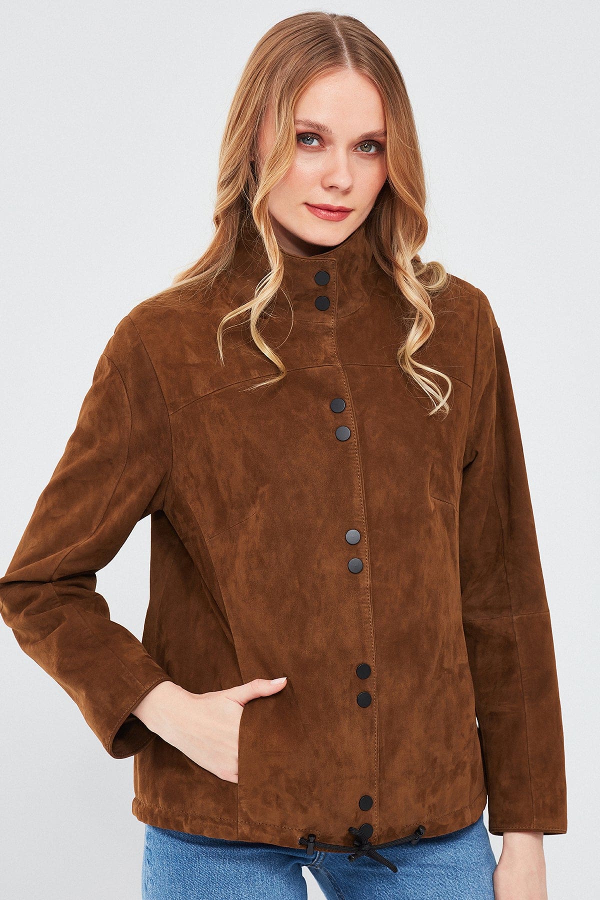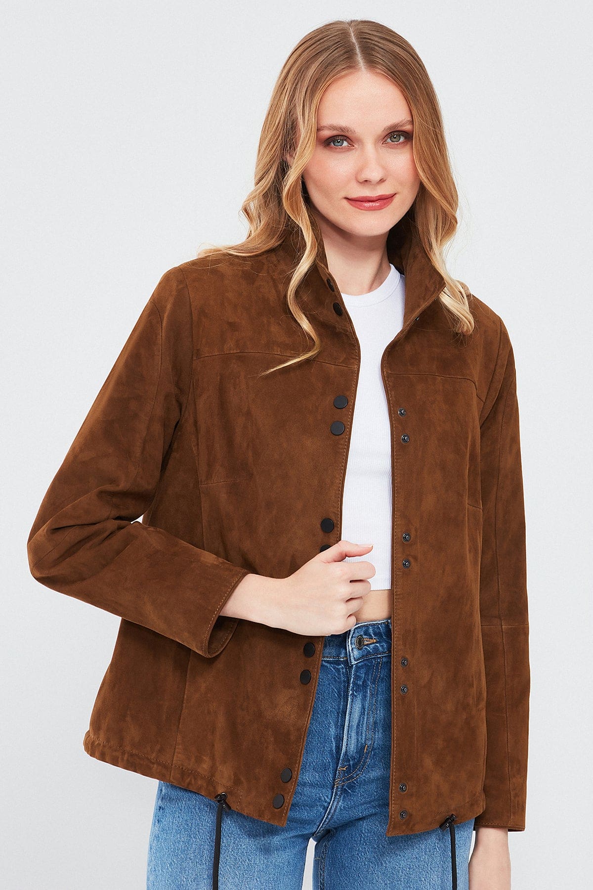 Lopez Kadın Kahverengi Oversize Süet Deri Ceket