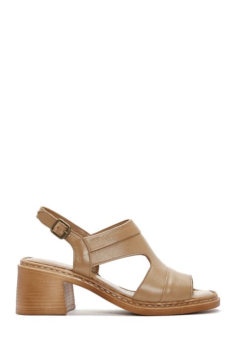 Kadın Camel Kalın Topuklu Bilekten Bantlı Deri Sandalet