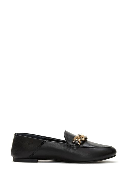 Kadın Siyah Deri Tokalı Klasik Loafer