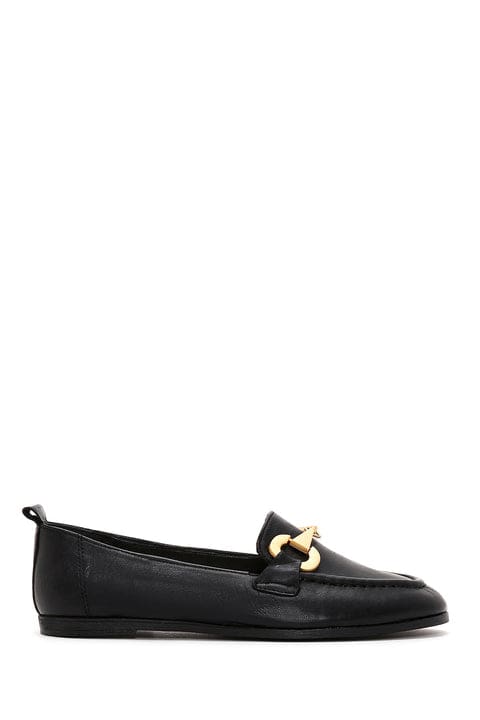 Kadın Siyah Deri Tokalı Klasik Loafer